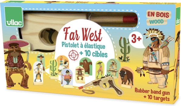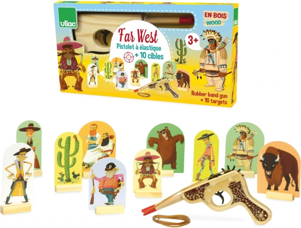 Το ξύλινο γουέστερν πιστόλι με στόχους VILAC προσφέρει έναν ασφαλή και διασκεδαστικό τρόπο ανταγωνισμού. Τα παιδιά, μέσα από το παιχνίδι, αναπτύσσουν τον συντονισμό χεριού-ματιού, μαθαίνουν να συγκεντρώνονται και εξασκούν την υπομονή. Ο απλός μηχανισμός με λαστιχάκι είναι εύκολος στη χρήση και κατάλληλος για μικρά παιδιά.