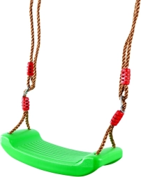 Ανακαλύψτε τη χαρά της κίνησης στον καθαρό αέρα με την ανθεκτική παιδική κούνια με κάθισμα. Το κάθισμα από ποιοτικό πλαστικό σε πράσινο χρώμα είναι διαμορφωμένο για σταθερότητα και άνεση, μειώνοντας τον κίνδυνο ολίσθησης και αυξάνοντας την ασφάλεια κατά το λίκνισμα. Τα σχοινιά με μεταλλικούς κρίκους και πόρπες ρύθμισης επιτρέπουν γρήγορη ρύθμιση του σωστού ύψους.