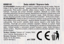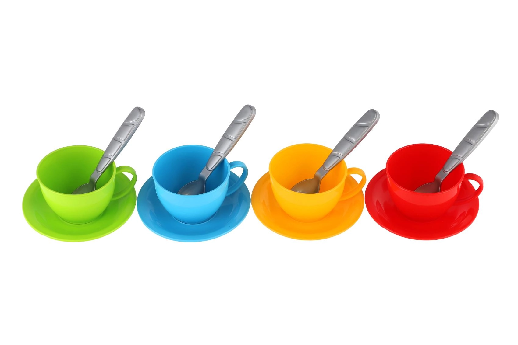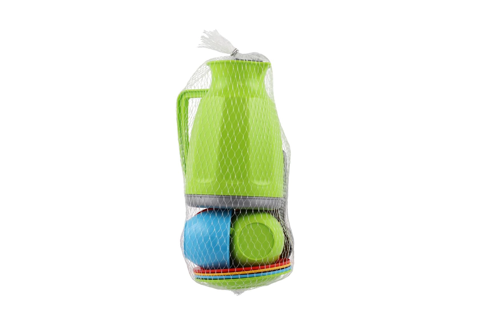 Το σετ περιλαμβάνει ό,τι χρειάζεται για ένα μικρό απογευματινό τσάι: τσαγιέρα, φλιτζάνια με πιατάκια και κουταλάκια σε χαρούμενα χρώματα. Συσκευασμένο σε πρακτικό δίχτυ που διευκολύνει την αποθήκευση και τη μεταφορά. Κατάλληλο από 12 μηνών.