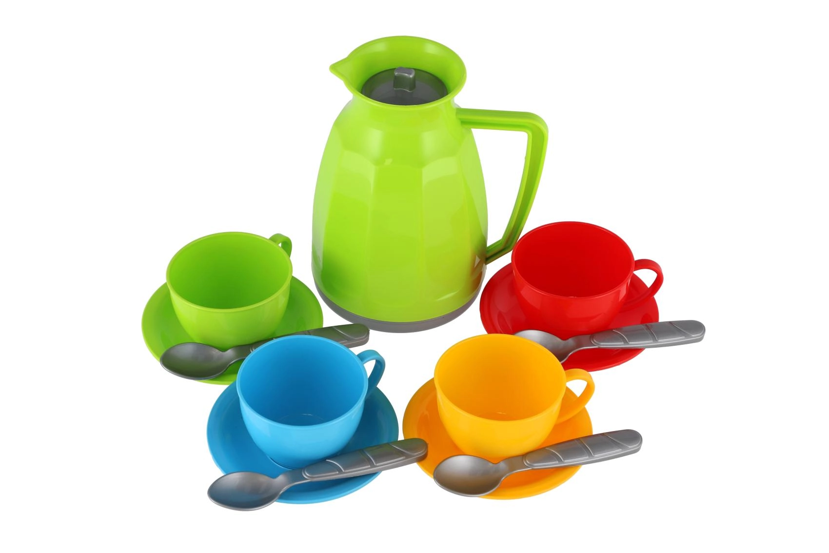Ένα χαριτωμένο παιδικό σετ τσαγιού από ελαφρύ πλαστικό που προσφέρει πολλή διασκέδαση για μικρές και μικρούς οικοδεσπότες. Περιλαμβάνει συνολικά 13 τεμάχια, μεταξύ των οποίων τσαγιέρα, φλιτζάνια, πιατάκια και κουταλάκια. Ιδανικό για παιχνίδι ρόλων, ανάπτυξη φαντασίας και κοινή διασκέδαση. Χάρη στα ζωηρά χρώματα είναι ελκυστικό για τα παιδιά και ασφαλές ήδη από 12 μηνών. Ελαφρύ, χρωματιστό και ανθεκτικό σετ σε πρακτικό δίχτυ για εύκολη μεταφορά.