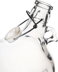 Μεγάλο γυάλινο ντεμιζόν χωρητικότητας 5 l με πρακτικό χερούλι και πατέντα κλιπ με σιλικονούχο παρέμβυσμα, ιδανικό για σπιτικά κρασιά, λικέρ, εκχυλίσματα και σιρόπια. Ανθεκτικό, διάφανο γυαλί που αναδεικνύει το περιεχόμενο, ενώ το αεροστεγές κλείσιμο εξασφαλίζει μακρόχρονη αποθήκευση χωρίς πρόσβαση αέρα. Το κομψό ρετρό στυλ και η εύκολη μεταφορά κάνουν αυτό το μπουκάλι εξαιρετική επιλογή για το σπίτι και την εστίαση.