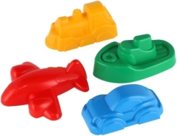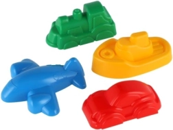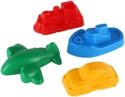 Αυτό το σετ 4 καλουπιών άμμου σε σχήμα τρένου, καραβιού, αεροπλάνου και αυτοκινήτου μετατρέπει κάθε αμμοδοχείο ή παραλία σε έναν κόσμο γεμάτο φαντασία. Χάρη στις kompakt διαστάσεις (περίπου 8–10 εκ.) κρατιούνται εύκολα από τα παιδιά και ξεκαλουπώνονται γρήγορα τέλεια σχηματισμένα καστράκια.