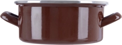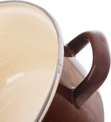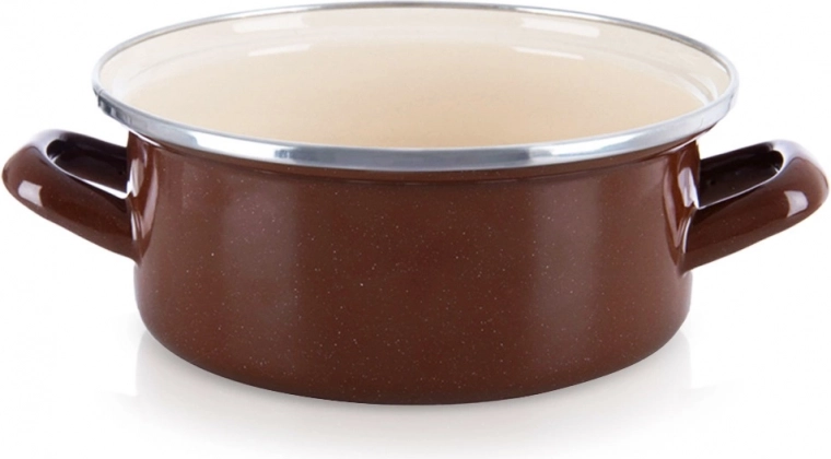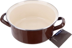 Ελεγκάντ κατσαρόλα ρετρό από τη συλλογή Brown που συνδυάζει την αντοχή του σμάλτου με διαχρονικό σχεδιασμό. Εξωτερικό μέρος και λαβές σε καφέ χρώμα, εσωτερικό με κρεμ σμάλτο, επάνω χείλος από ανοξείδωτο ατσάλι για μεγαλύτερη ανθεκτικότητα. Χάρη στη ομοιόμορφη κατανομή θερμότητας, είναι ιδανική για σούπες, σάλτσες και μαγειρευτά.