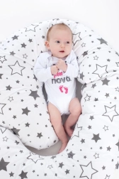 Χάρη στο αφαιρούμενο βαμβακερό κάλυμμα η φροντίδα είναι εύκολη – απλώς ανοίγετε το φερμουάρ και το πλένετε. Η μαλακή πολυεστερική γέμιση προσφέρει στήριξη χωρίς ανεπιθύμητη πίεση και βοηθά να διατηρείται σταθερή η θέση μαμάς και μωρού. Το μαξιλάρι χρησιμοποιείται ως χαλαρωτική υποστήριξη στην εγκυμοσύνη, στον θηλασμό και ως ασφαλής στήριξη για το μωρό κατά την ξεκούραση.