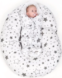 Το γενναιόδωρο σχήμα αγκαλιάζει όλο το σώμα, στηρίζει κεφάλι, κοιλιά, πλάτη και πόδια για ήρεμο ύπνο και άνετο τάισμα.