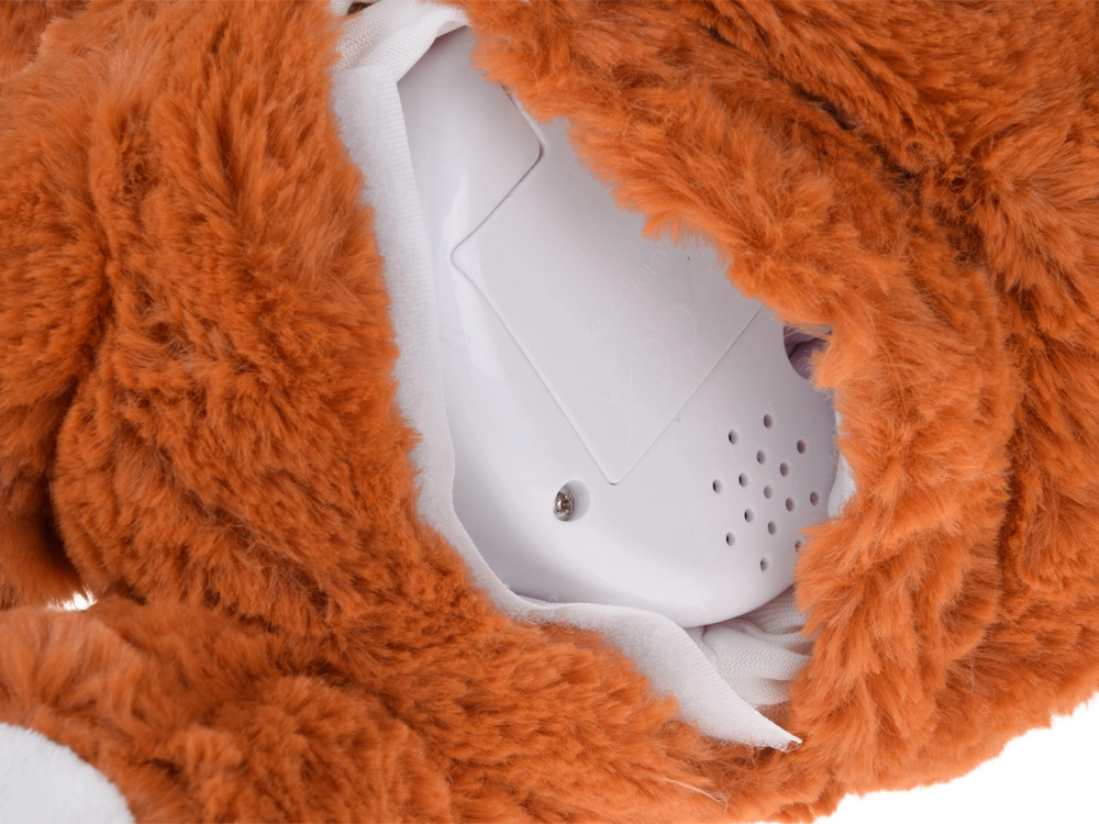 Το διαδραστικό πάνελ είναι αποσπώμενο, ώστε το λούτρινο μέρος να μπορεί να πλυθεί στο χέρι και να διατηρείται άψογα καθαρό. Μετά την αναπαραγωγή, τα νανουρίσματα απενεργοποιούνται αυτόματα μετά από 30 λεπτά, ώστε να μην διακόπτουν τον ύπνο. Ο χειρισμός είναι διαισθητικός – αλλαγή μελωδίας με το κουμπί με την καρδούλα, σβήσιμο φωτός με πάτημα του πάνελ.