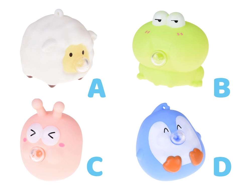 Χαριτωμένο αντιστρες παιχνίδι σε σχήμα ζώου που, όταν το πιέζετε, «φουσκώνει» ένα μεγάλο μπαλόνι, προσφέροντας άμεση ανακούφιση από την ένταση και διασκέδαση οπουδήποτε. Χάρη στο συμπαγές μέγεθος, το έχετε πάντα μαζί σας – στην τσέπη, στο σακίδιο ή στο γραφείο. Κατασκευασμένο από ευχάριστο, μαλακό καουτσούκ και με άνοιγμα ώστε να χρησιμοποιείται ως μπρελόκ. Αντιστρες ανακούφιση, αισθητηριακή διέγερση και διασκεδαστικός σχεδιασμός σε ένα.