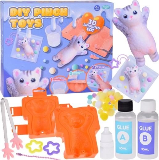 Ανακαλύψτε ένα διασκεδαστικό DIY σετ, με το οποίο τα παιδιά θα δημιουργήσουν μόνα τους ένα χαριτωμένο γατίσιο μπρελόκ. Θα αναμείξουν το υλικό, θα το χρωματίσουν, θα το διακοσμήσουν με πομ-πον, αστεράκια και απαλό “πούπουλο” και τη τελειωμένη γατούλα θα την βάλουν σε διακοσμητικό πουγκί με αλυσίδα. Το αποτέλεσμα είναι ένα αντιστρές, μαλακό και απαλό φυλαχτό που μπορούν να έχουν παντού μαζί τους.
