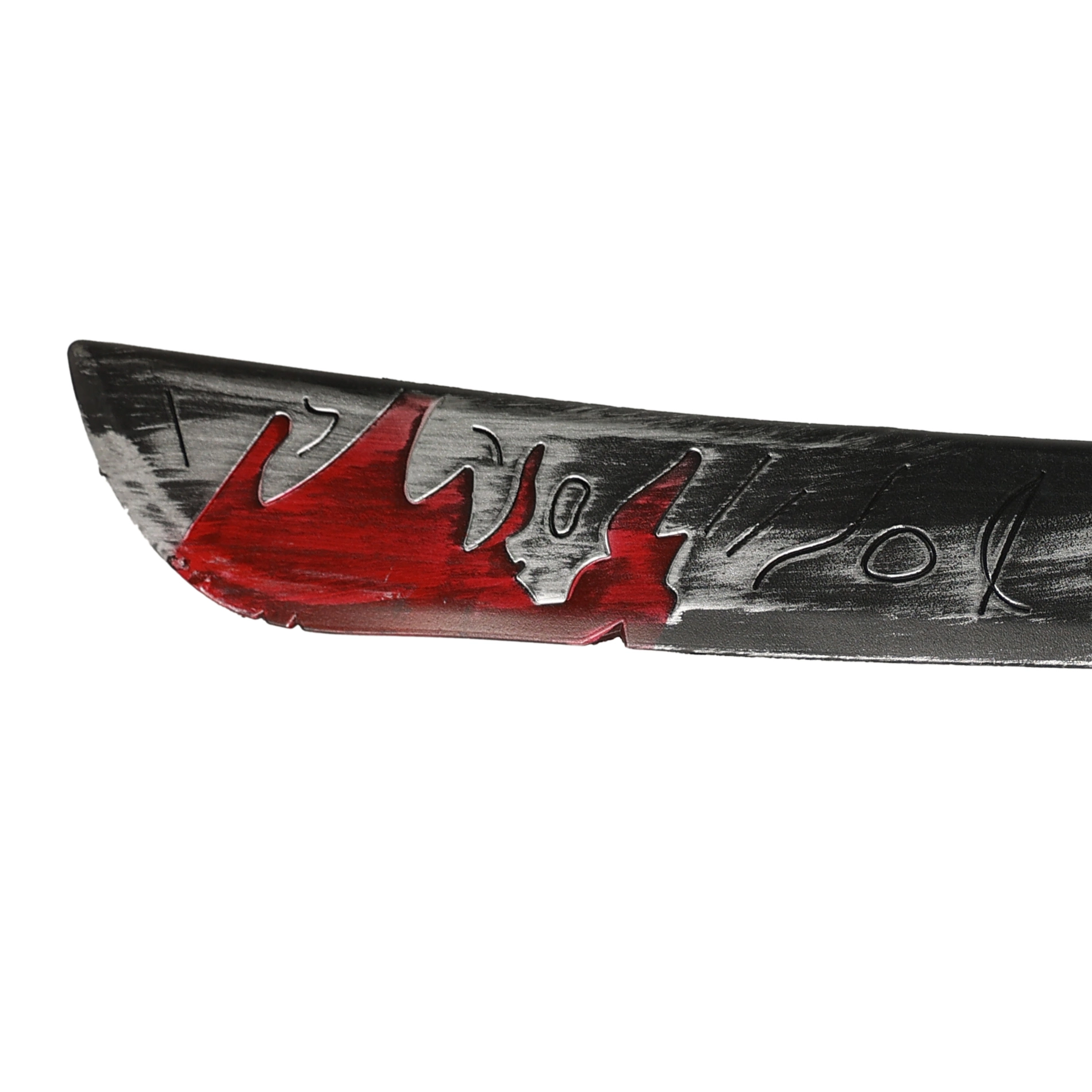 Η γκρι, παλαιωμένη λεπίδα με κόκκινες λεπτομέρειες δημιουργεί εντυπωσιακή αλλά ασφαλή εμφάνιση που αναδεικνύει κάθε αποκριάτικη στολή για Halloween.