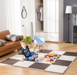 Πολυχρηστικό αφρώδες υπόστρωμα για βρέφη και μεγαλύτερα παιδιά σε κομψή απόχρωση σκούρου μπεζ που δένει αρμονικά με το σπίτι. Χάρη στο πάχος 1 εκ. μονώνει άριστα από το κρύο, είναι ευχάριστα μαλακό και ασφαλές για παιχνίδι, μπουσούλημα και τα πρώτα βήματα. Το υλικό EVA χωρίς φθαλικές ενώσεις, φορμαμίδη, PVC και BPA είναι φιλικό προς το παιδικό δέρμα και συντηρείται εύκολα.
