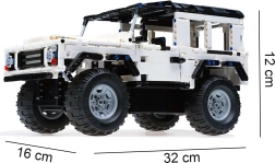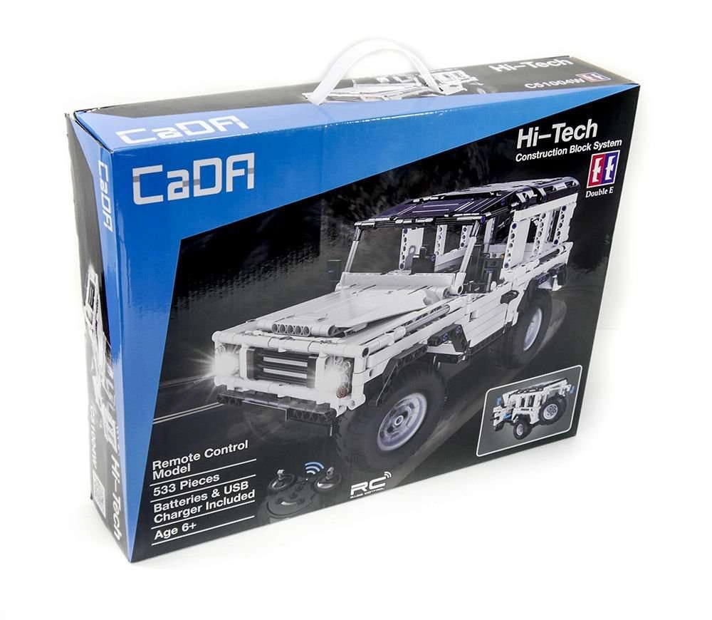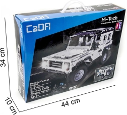 Το σετ CaDA Hi‑Tech είναι εξαιρετική επιλογή για μικρούς και μεγάλους κατασκευαστές που αγαπούν τις προκλήσεις. Το λευκό off‑road σε στυλ Jeep προσφέρει σταθερή κατασκευή, ανοιγόμενα στοιχεία και ομαλό χειρισμό μέσω 2,4 GHz. Μετά τη συναρμολόγηση, το μοντέλο φτάνει έως 6,3 km/h και χάρη στην αξιόπιστη ραδιοζεύξη απολαμβάνετε ομαλή οδήγηση μπρος, πίσω και στροφή.