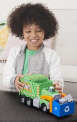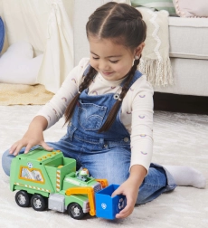 Ξεκινήστε αποστολή για μια πιο καθαρή πόλη με τον Rocky και το πράσινο ανακυκλωτικό του όχημα. Τα παιδιά μπορούν να σηκώνουν τον μπλε κάδο, να φορτώνουν «σκουπίδια» και να μαθαίνουν τη διαλογή. Αυθεντικές λεπτομέρειες από τη σειρά Paw Patrol ενισχύουν τη φαντασία και το αφηγηματικό παιχνίδι.