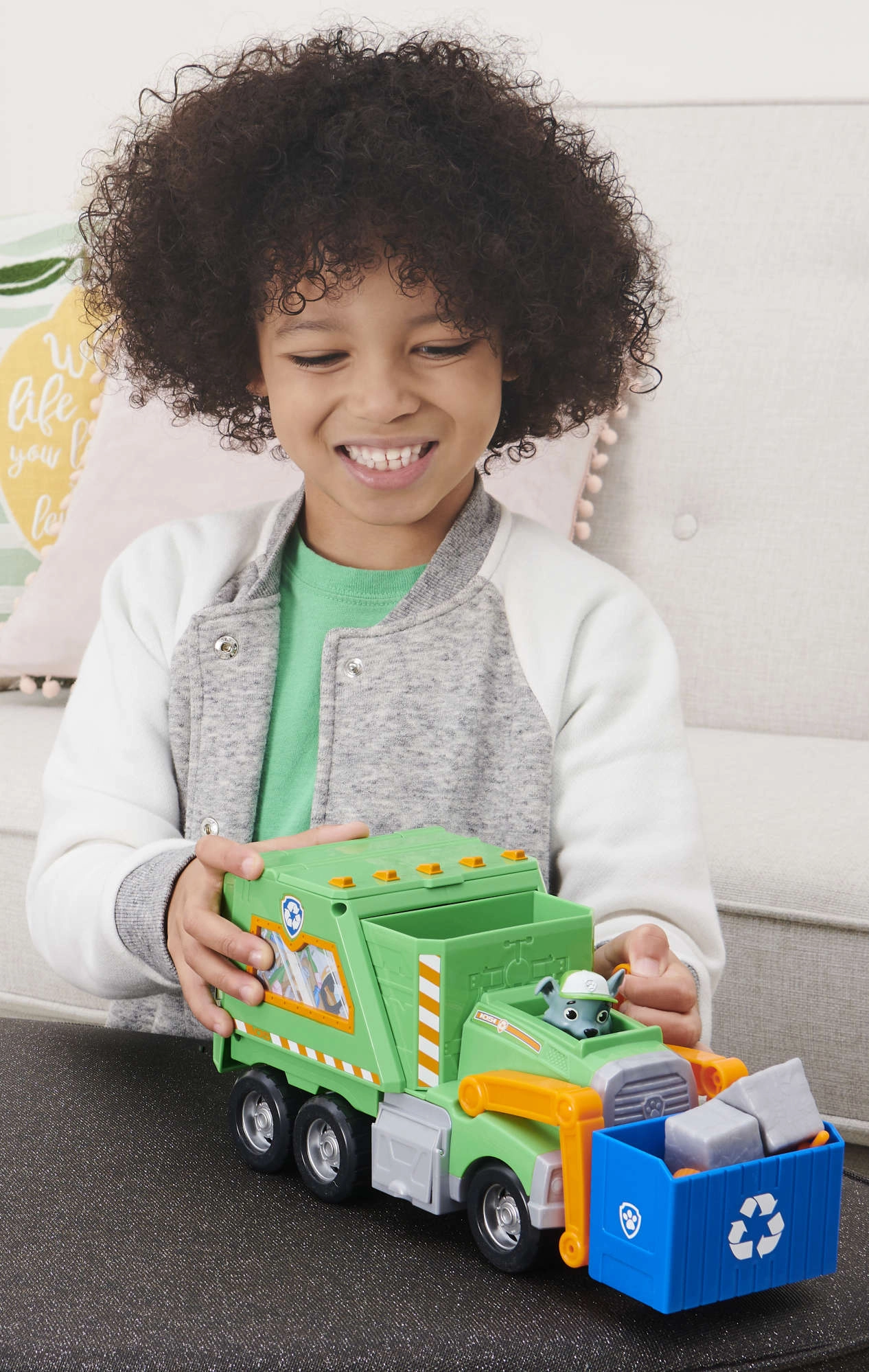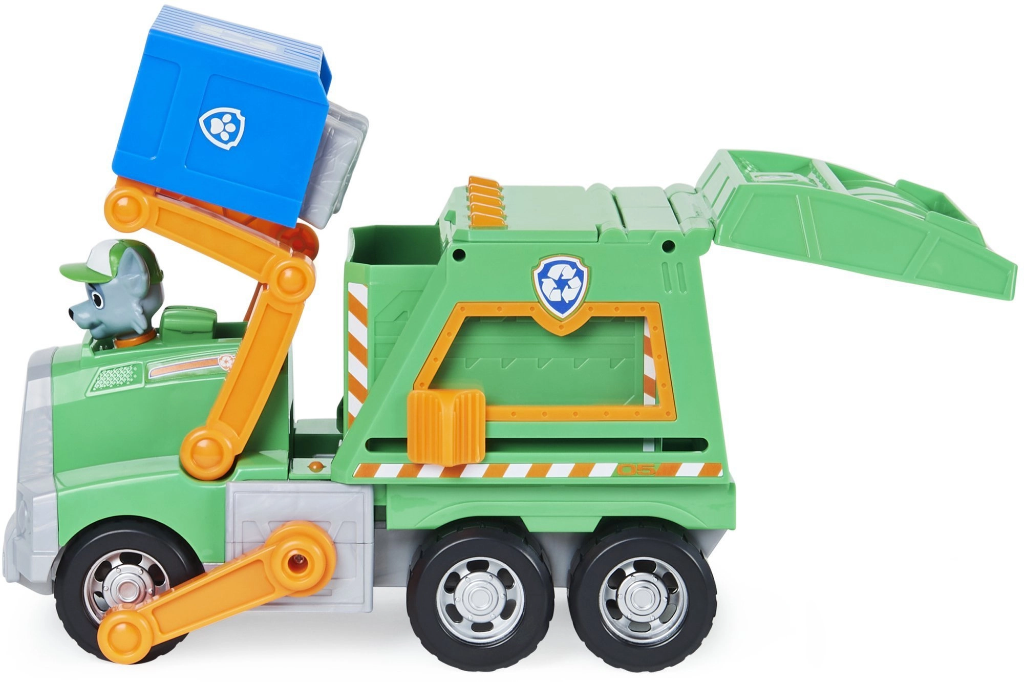 Το μεγάλο ανακυκλωτικό φορτηγό από τη δημοφιλή σειρά Paw Patrol προσφέρει στα παιδιά ώρες δημιουργικού παιχνιδιού. Το πράσινο όχημα του Rocky διαθέτει κινητές διχάλες, εναλλάξιμα εργαλεία, κάδο διαλογής και θέση για τη φιγούρα του Rocky. Χάρη στην ανθεκτική κατασκευή και τους κινούμενους τροχούς είναι ιδανικό για παιχνίδι στο σπίτι και στο χαλί.