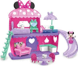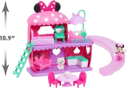 Το σετ περιλαμβάνει 2 φιγούρες (ύψος περίπου 7,5 cm) και πλούσια αξεσουάρ, συμπεριλαμβανομένων επίπλων. Τα παιδιά μπορούν να στέλνουν τις φιγούρες στην τσουλήθρα, να ανεβαίνουν τα σκαλάκια και να αναδιαμορφώνουν ξανά και ξανά το εσωτερικό. Ιδανικό ως δώρο για παιδιά από 3 ετών και επίσης ως επέκταση της συλλογής παιχνιδιών με θέμα τη Minnie.