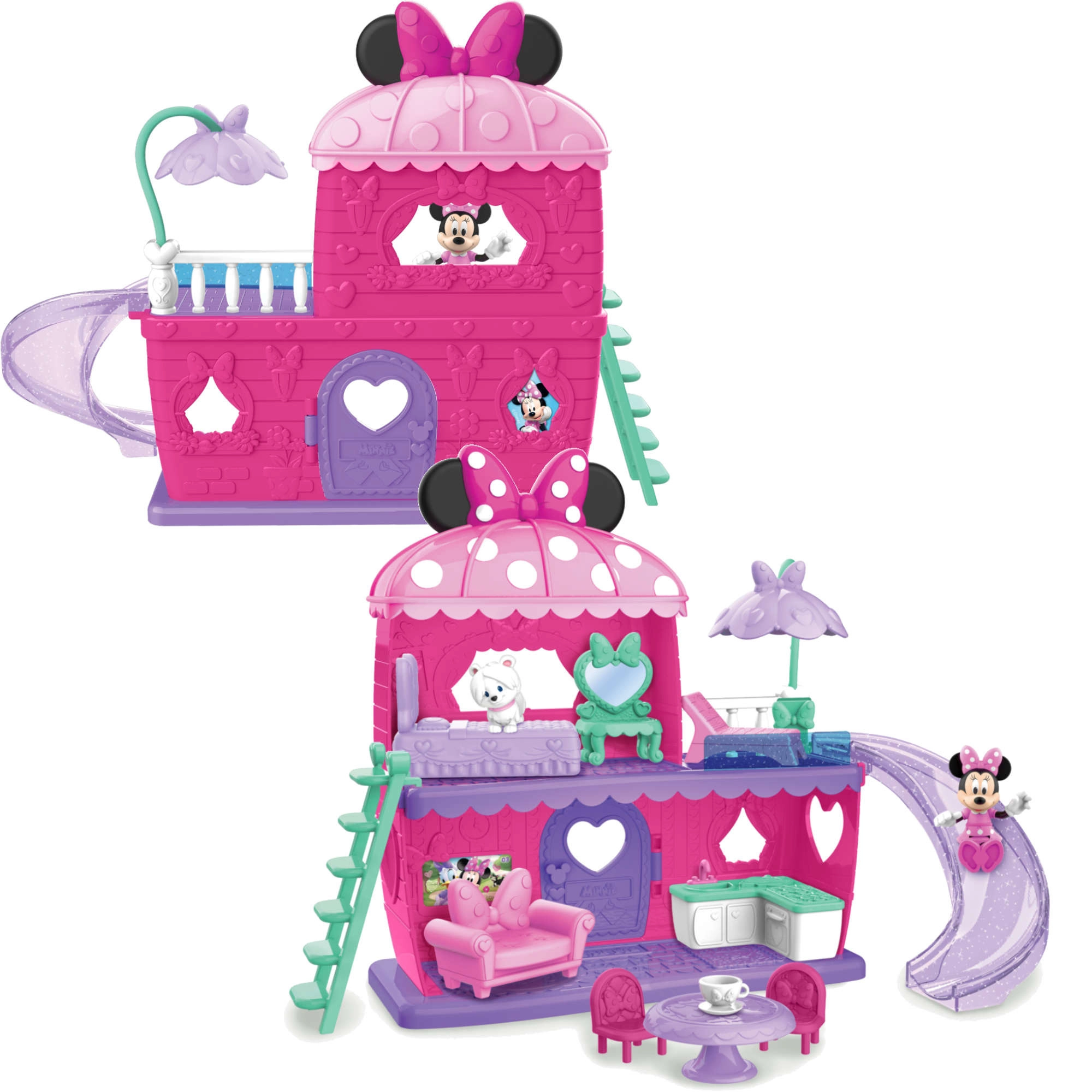 Ανακαλύψτε το μαγικό ροζ σπιτάκι MINNIE MOUSE με δύο ορόφους και δύο δωμάτια – επάνω βρίσκεται μία άνετη κρεβατοκάμαρα με μπαλκόνι, ενώ κάτω υπάρχει σαλόνι με κουζινάκι. Χάρη στην ανοιχτή πίσω πλευρά, το παιχνίδι είναι ευανάγνωστο και εύκολα προσβάσιμο από όλες τις πλευρές.