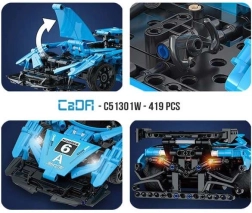 Συναρμολογήστε το δικό σας σπορ αυτοκίνητο Helios από την CaDA και απολαύστε οδήγηση με απομακρυσμένο έλεγχο Dual Mode μέσω χειριστηρίου 2,4 GHz ή εφαρμογής Bluetooth. Το μοντέλο, μήκους σχεδόν 40 cm, προσφέρει φωτιζόμενα LED, κινητά στοιχεία (ανοιγόμενο κάλυμμα, τιμόνι, κάθισμα) και λάστιχα για ομαλή κίνηση. Ιδανικό δώρο για μικρούς και μεγάλους κατασκευαστές – 419 κομμάτια εγγυώνται διασκεδαστική συναρμολόγηση και εντυπωσιακό αποτέλεσμα.