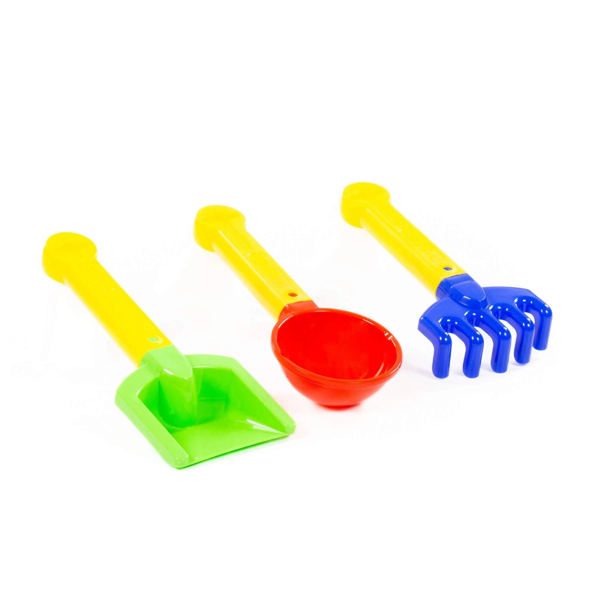- 3 τεμάχια: 2 φτυαράκια και τσουγκράνα για διαφορετικά παιχνίδια και κατασκευές με άμμο.