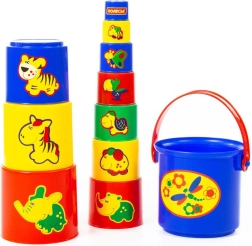 Αυτή η μεγάλη στοιβαζόμενη πυραμίδα με ζωάκια είναι ιδανικό παιχνίδι για παιδιά που τους αρέσει να χτίζουν και να ανακαλύπτουν. Τα μεμονωμένα κυπελάκια με εικόνες ζώων εφαρμόζουν εύκολα μεταξύ τους και επιτρέπουν την κατασκευή πύργου ύψους έως 73 cm. Τα παιδιά κατά το παιχνίδι εξασκούν ικανότητες συντονισμού, λεπτή κινητικότητα και λογική σκέψη.