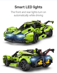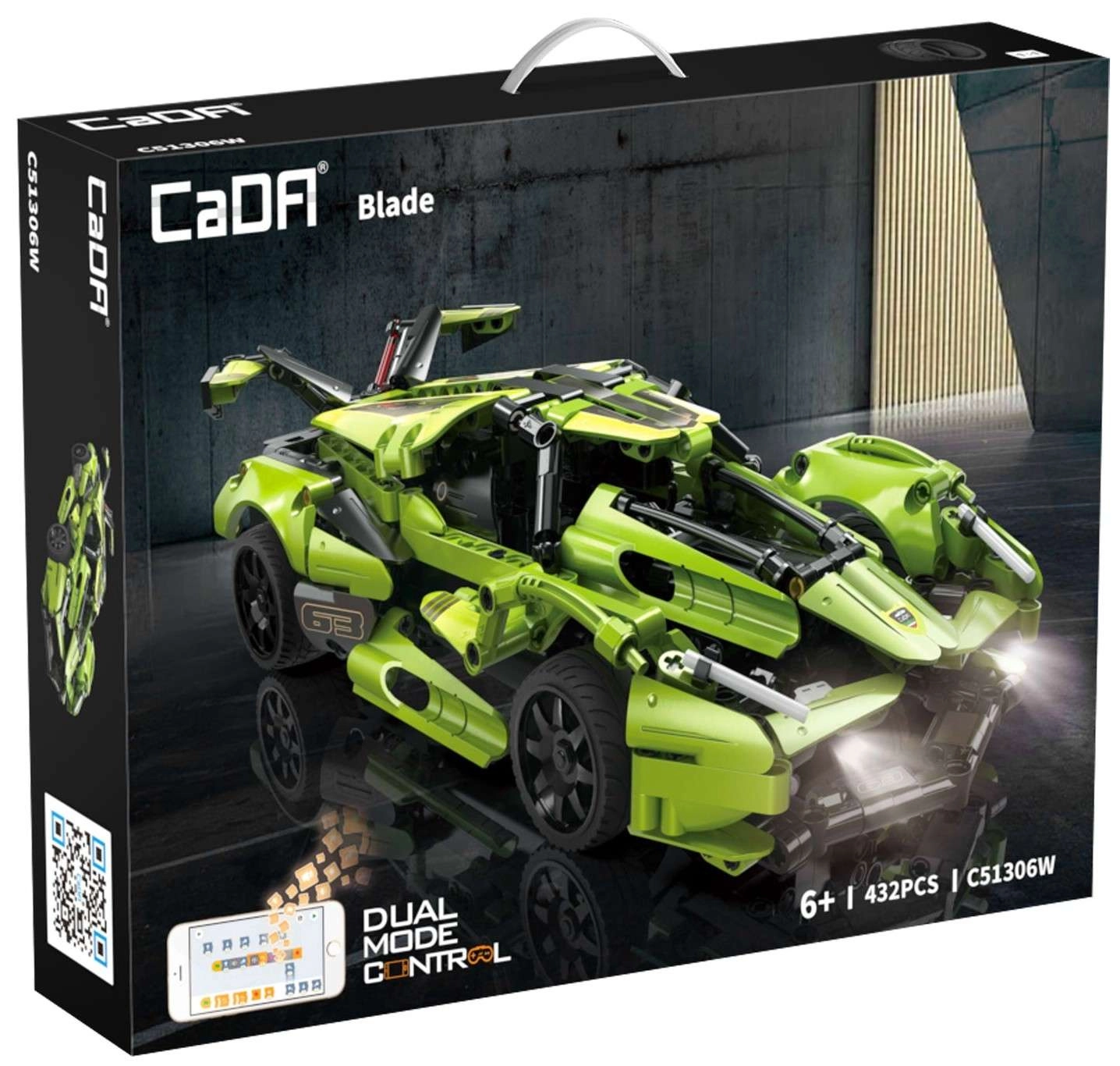 Συναρμολογήστε το δικό σας πράσινο σπορ αυτοκίνητο Blade από τη μάρκα CaDA και ελέγξτε το απομακρυσμένα με τηλεχειριστήριο RC 2,4 GHz ή εφαρμογή Bluetooth. Το σετ περιλαμβάνει 432 κομμάτια, λειτουργικά μπροστινά και πίσω LED φώτα, λάστιχα για οδήγηση σε διάφορες επιφάνειες και εμβέλεια ελέγχου πάνω από 25 μέτρα. Μέγιστη ταχύτητα έως 5,5 km/h και κομψή συσκευασία που το καθιστούν ένα υπέροχο δώρο για μικρούς και μεγάλους κατασκευαστές.
