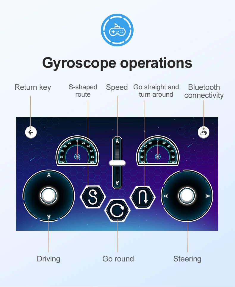 - Remote control, Scratch programming, Gyroscope control, Path mode