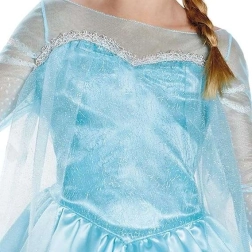 Η στολή εμπνευσμένη από το παραμύθι DISNEY Frozen μεταμορφώνει κάθε κοριτσάκι στην αγαπημένη πριγκίπισσα Έλσα. Το φόρεμα με μακρύ μανίκι είναι φτιαγμένο από ελαφρύ, γυαλιστερό και ευχάριστο ύφασμα, που προσφέρει άνεση για ολόκληρη την ημέρα. Τα λαμπερά στοιχεία και ο χρωματικός συνδυασμός σε μπλε και ασημί χαρίζουν αυθεντική εμφάνιση.