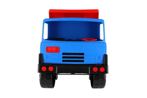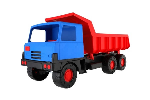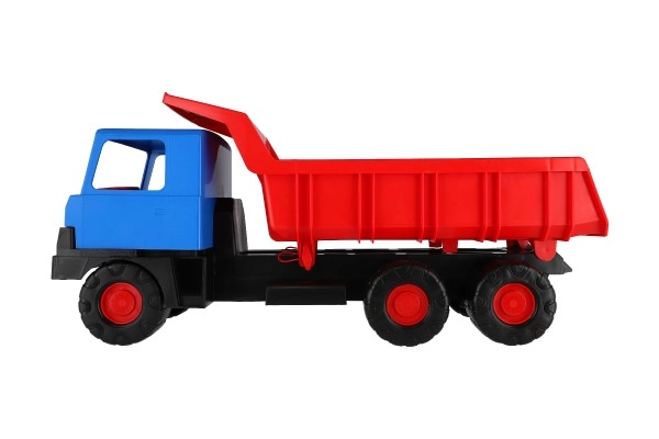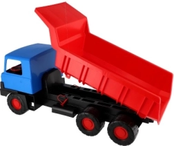 Ένα ανθεκτικό πλαστικό φορτηγό με μπλε καμπίνα και κόκκινη ανατρεπόμενη καρότσα που θα ενθουσιάσει τους μικρούς κατασκευαστές στο σπίτι και στην παιδική χαρά. Χάρη στο μήκος 75 cm, τους ανθεκτικούς τροχούς και τη λειτουργική ανατροπή, μεταφέρει άμμο, χαλικάκια και παιχνίδια. Ελαφριά και ασφαλής κατασκευή που ενθαρρύνει δημιουργικό και υπαίθριο παιχνίδι.