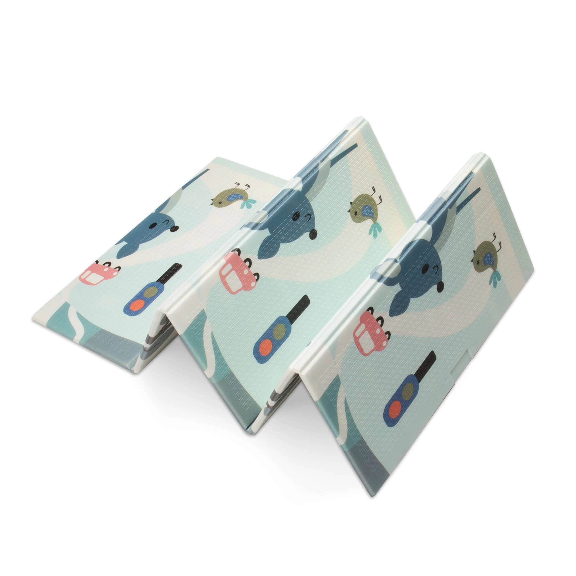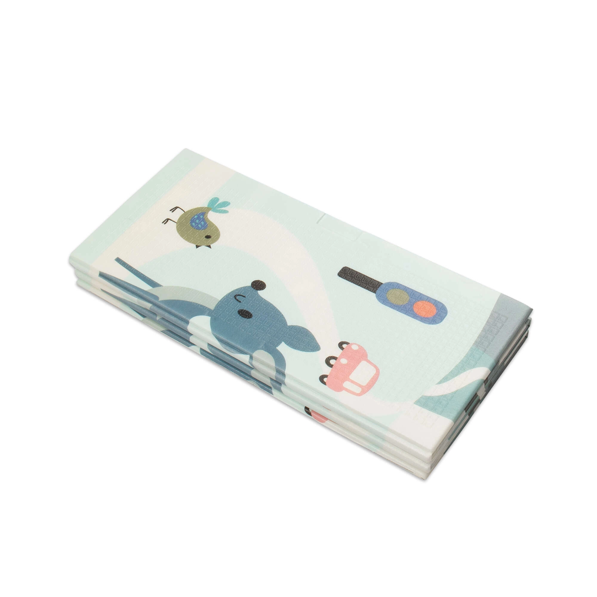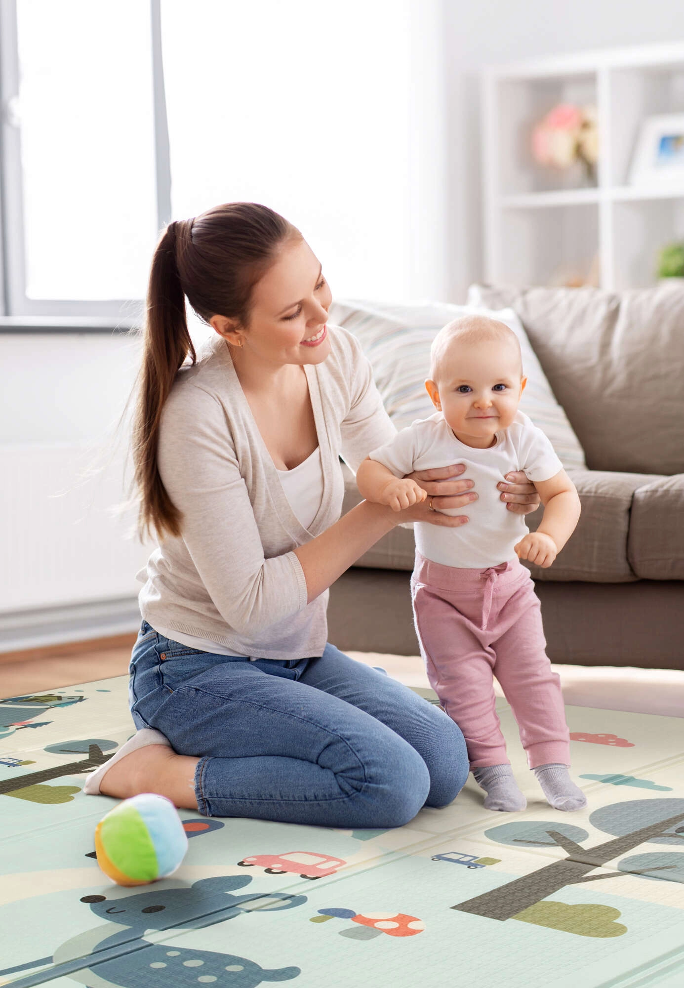 Κάθε πλευρά προσφέρει διαφορετικό εκπαιδευτικό γραφικό – απαλά μοτίβα με ζωάκια και διαδρομές ή έντονες εικόνες για οπτική διέγερση των μωρών.