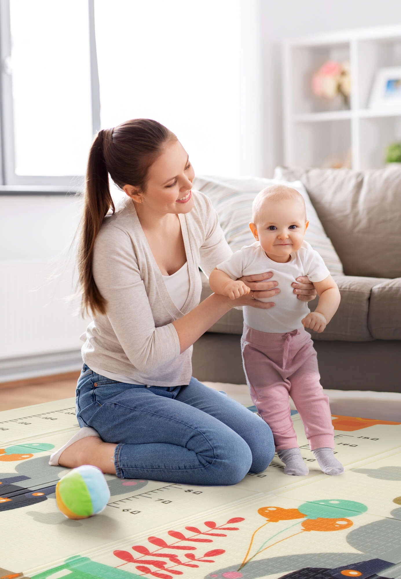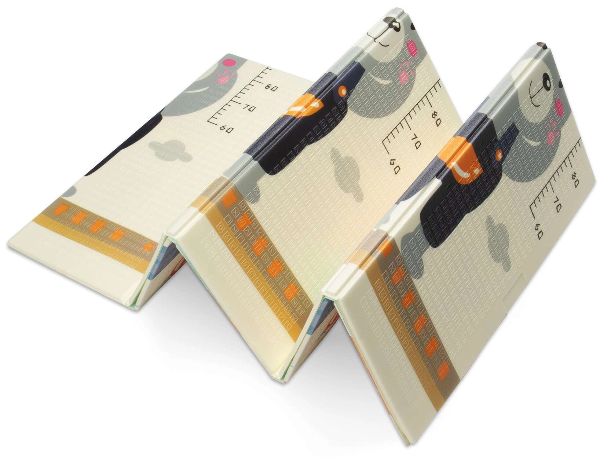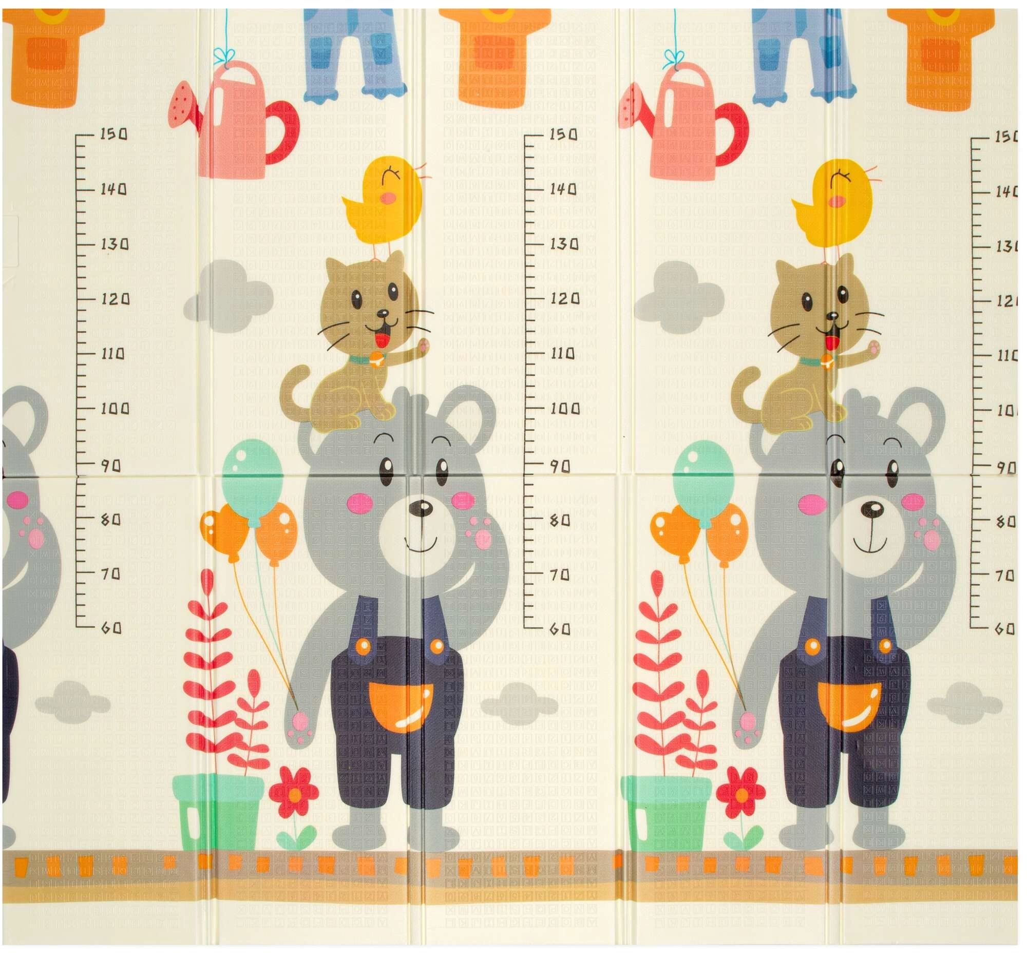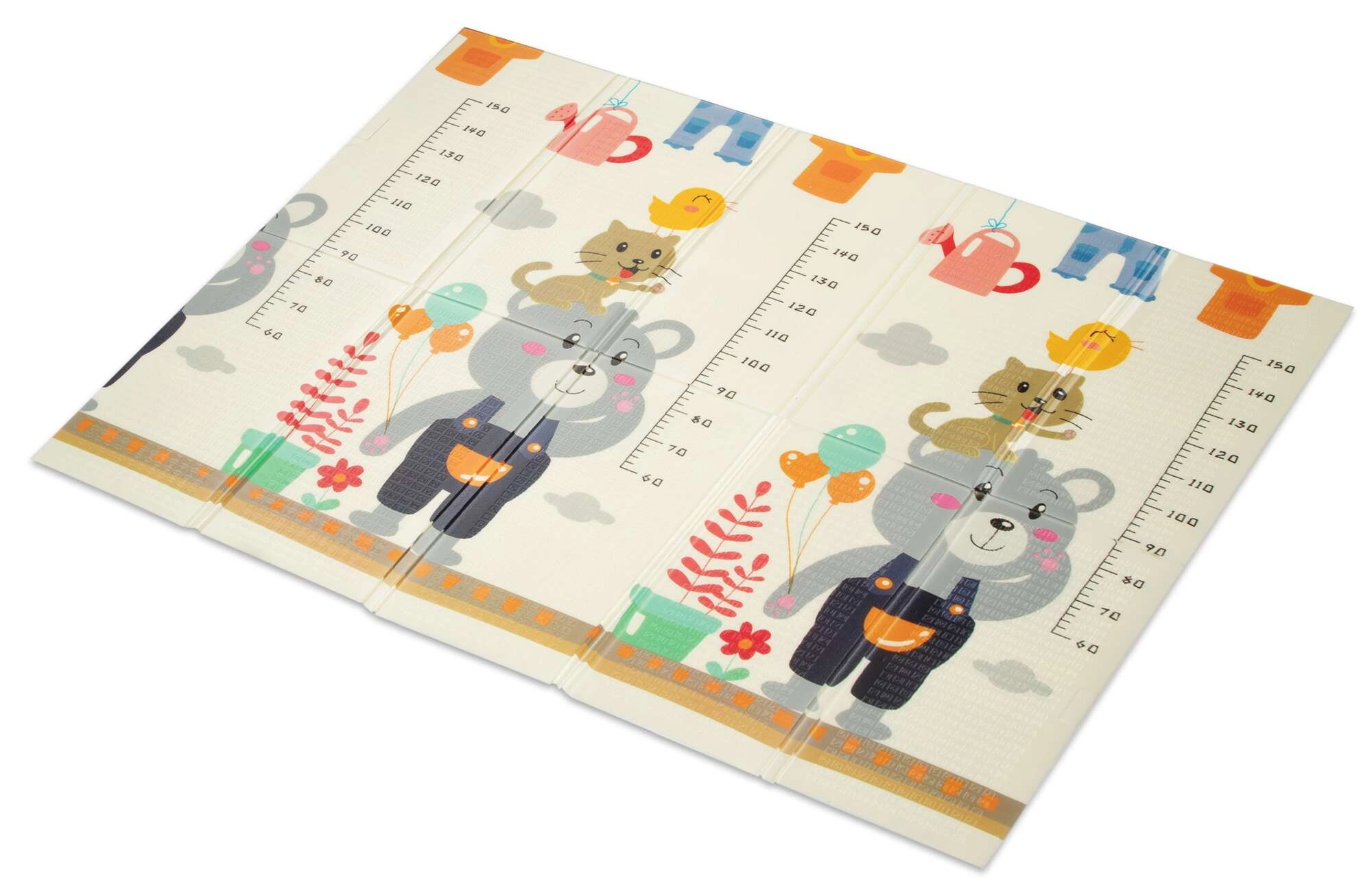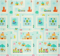 Η μία πλευρά με χαριτωμένα ζωάκια και κλίμακα για παρακολούθηση ανάπτυξης, η άλλη με δρομάκια και αυτοκινητάκια για ανάπτυξη της φαντασίας στο παιχνίδι.