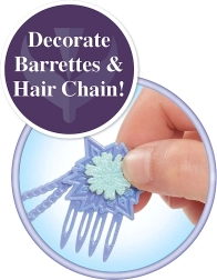 Βούρτσα, διακοσμητική αλυσίδα για τα μαλλιά, 4 κρυσταλλάκια, 4 κλιπ, 4 λαστιχάκια και 2 τουφάκια για πλέξιμο – όλα όσα χρειάζονται τα παιδιά για να δημιουργήσουν πρωτότυπα χτενίσματα.