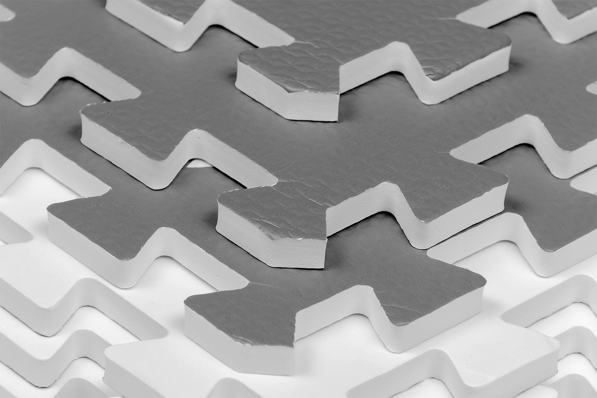 Τα μοντελικά κομμάτια παζλ 60 × 60 cm συνδέονται εύκολα σε μεγαλύτερη επιφάνεια ή μπορούν να σχηματίσουν τρισδιάστατα σχήματα (π.χ. κύβο), που αναπτύσσουν τη φαντασία των παιδιών. Το υλικό EVA είναι αδιάβροχο και υγιεινό – αρκεί να σκουπιστεί με υγρό πανί, δεν απορροφά σκόνη ή ακάρεα.