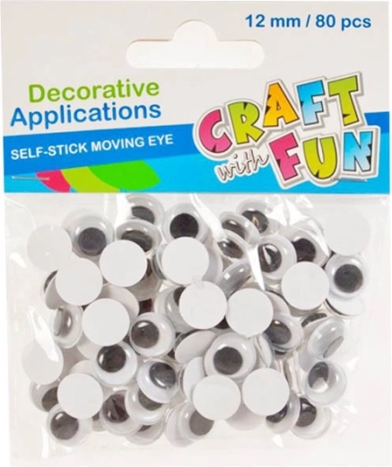 Δημιουργήστε πρωτότυπες διακοσμήσεις και διασκεδαστικά πρότζεκτ με αυτά τα κινούμενα αυτοκόλλητα μάτια. Η συσκευασία περιλαμβάνει 80 τεμάχια με κινούμενες μαύρες κόρες, ιδανικά για χειροτεχνίες, scrapbooking και άλλες δημιουργικές εργασίες. Κατάλληλα για παιδιά από 3 ετών.
