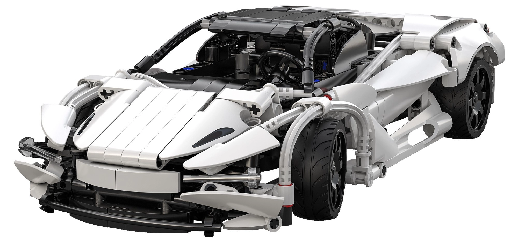 Λευκό αμάξωμα με μαύρες λεπτομέρειες, ανοιγόμενο καπό και ελαστικά λάστιχα για σίγουρη πρόσφυση στην επιφάνεια. Εξαιρετική εμφάνιση και λειτουργικότητα.