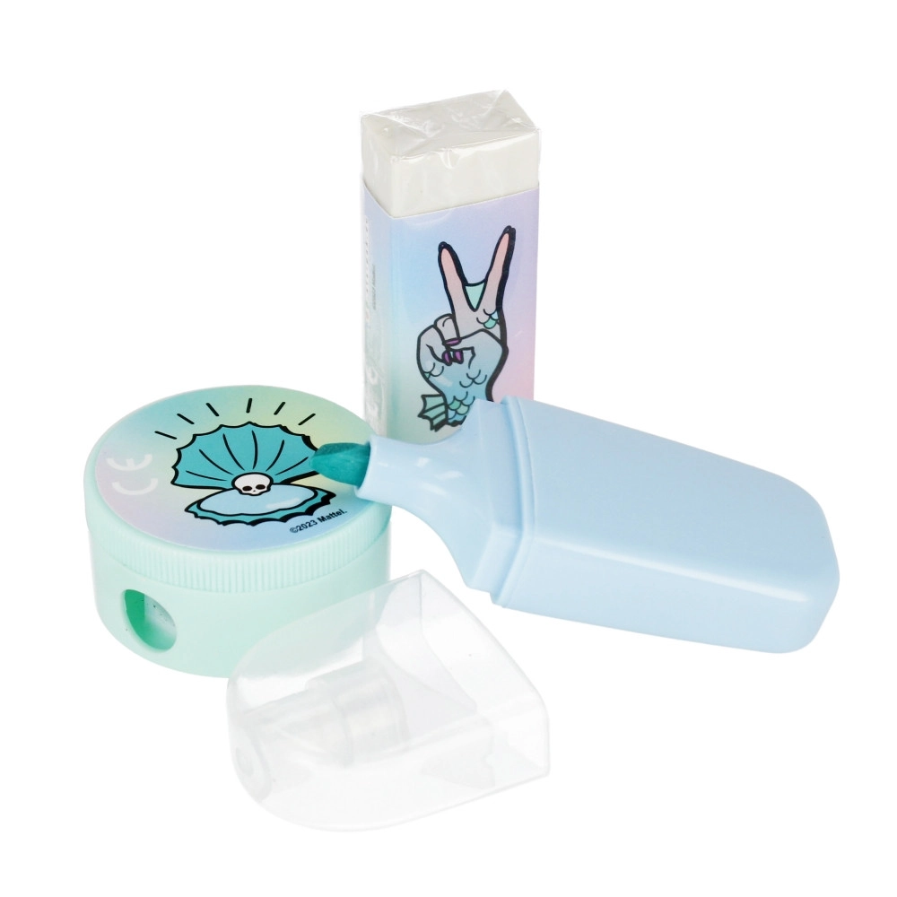 Τα πρακτικά αξεσουάρ, όπως ο υπογραμμιστής, το ξυστήρι, οι γόμες και ο χάρακας 15 εκ., κάνουν το σετ εξαιρετική επιλογή για το σχολείο και τις εργασίες στο σπίτι. Οι χαρούμενες εικόνες και οι παστέλ αποχρώσεις παρακινούν τα παιδιά στη δημιουργία και τη διασκεδαστική μάθηση.