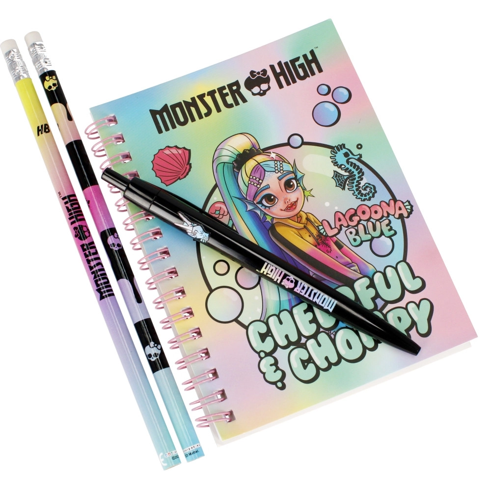 Αυτό το πλήρες σχολικό σετ με θέμα MONSTER HIGH προσφέρει ό,τι χρειάζονται τα παιδιά για γραφή, ζωγραφική και οργάνωση σημειώσεων. Χάρη στο σπιράλ τετράδιο οι σελίδες γυρίζουν εύκολα και παραμένουν επίπεδες, ενώ η διάφανη κασετίνα κρατά όλα τα είδη σε τάξη και οργανωμένα.