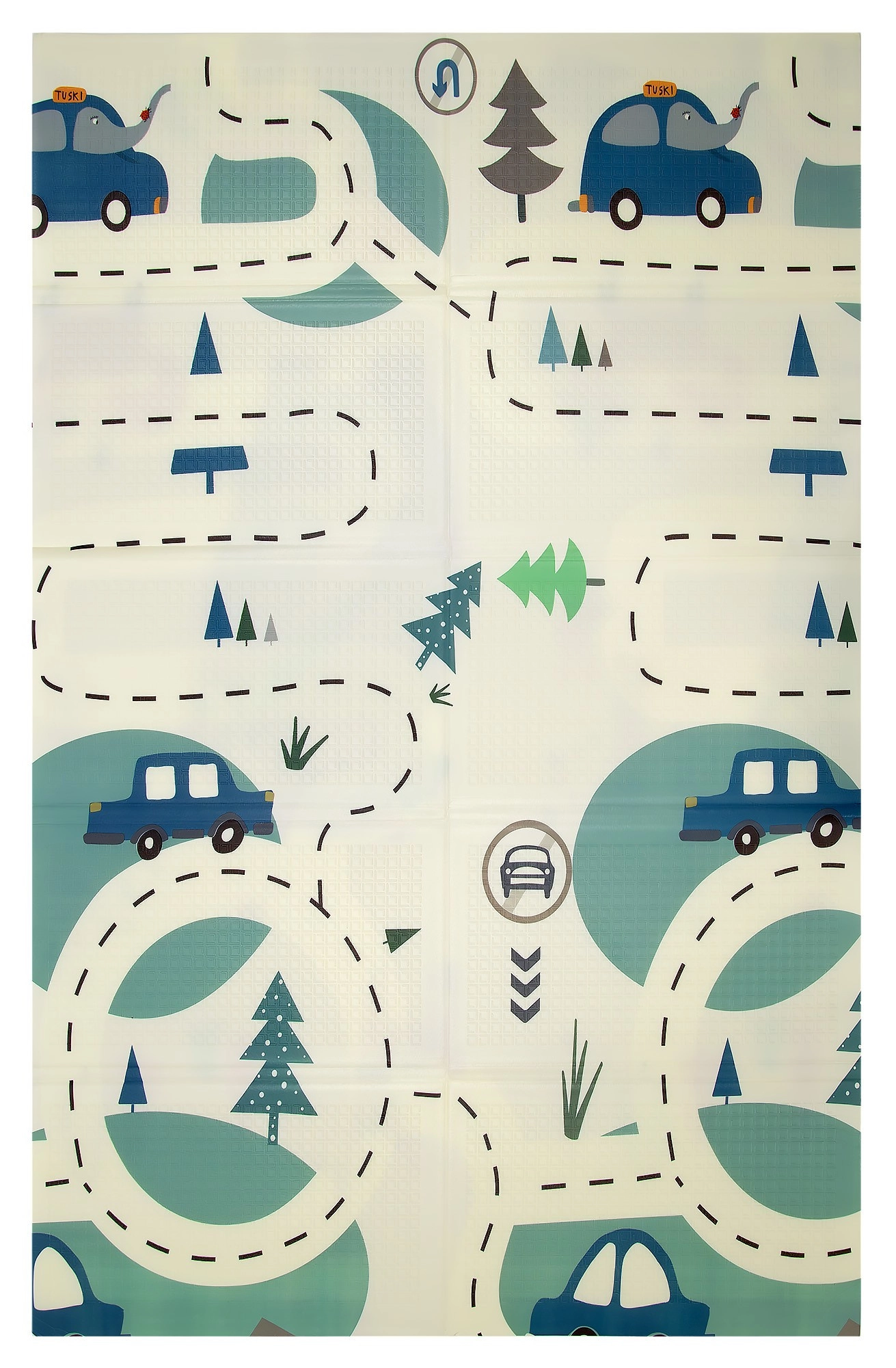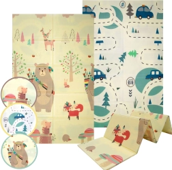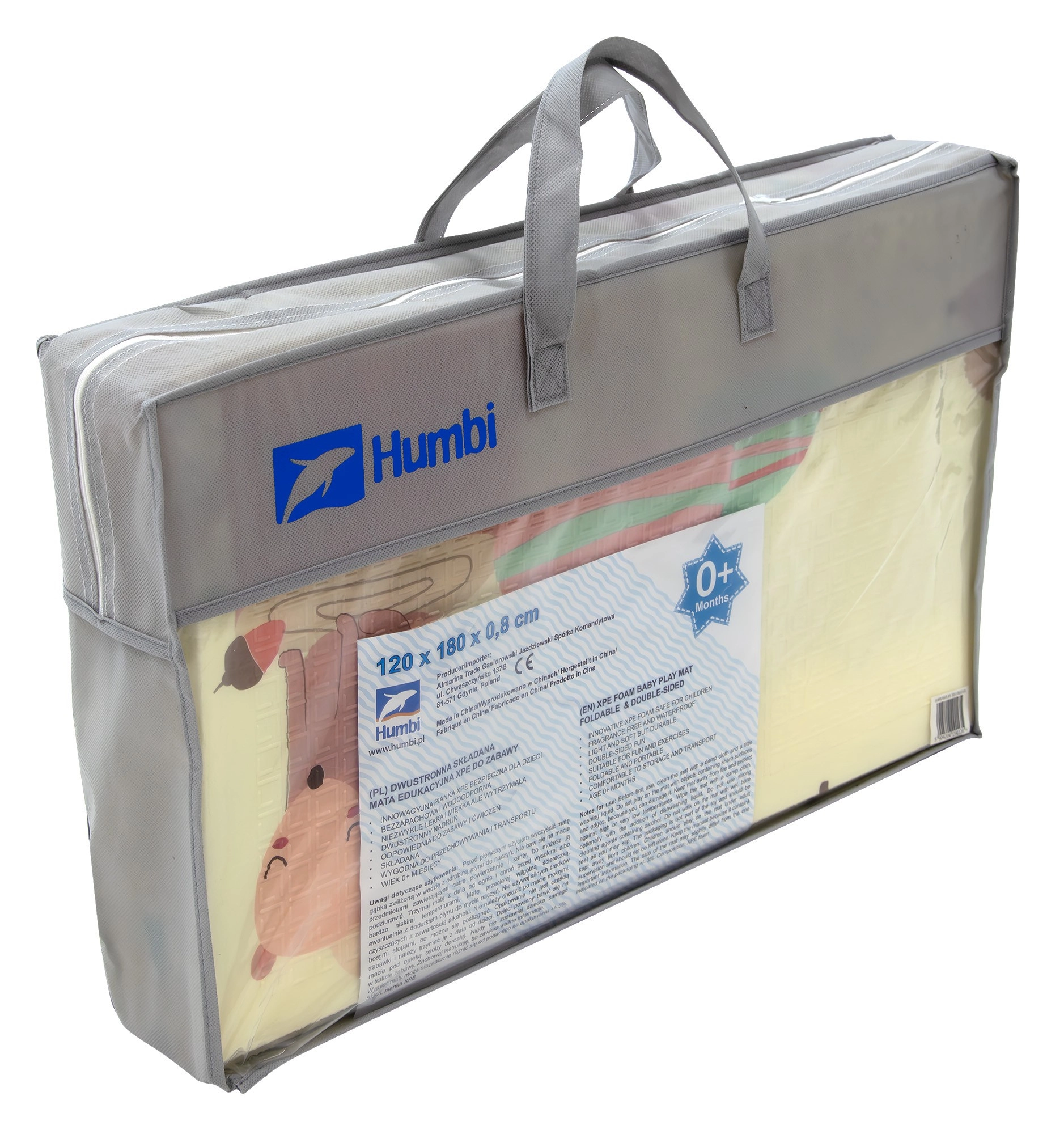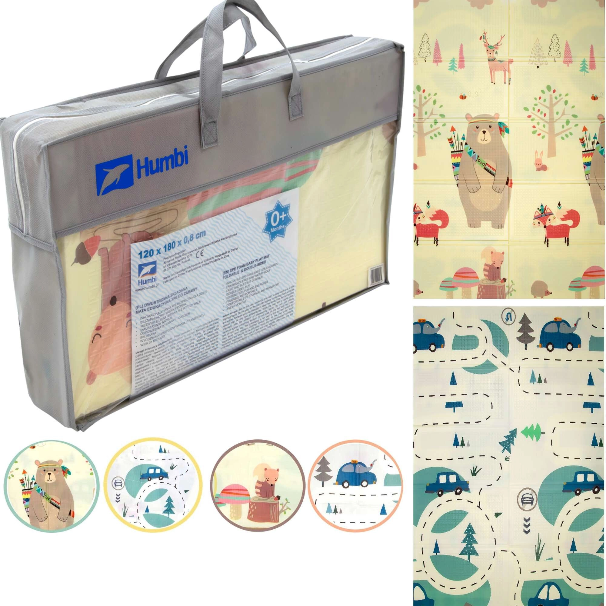 Το χαλάκι HUMBI προσφέρει στα παιδιά ένα μαλακό και ασφαλές μέρος για παιχνίδι, ξεκούραση και ανάπτυξη κινητικών δεξιοτήτων. Ο ποιοτικός αφρός XPE είναι ανθεκτικός, απορροφά τους κραδασμούς και ταυτόχρονα μονώνει εξαιρετικά το κρύο από το πάτωμα. Ο διπλής όψης σχεδιασμός διαθέτει στη μία πλευρά χαριτωμένα δασικά μοτίβα (αρκουδάκια, αλεπούδες, σκαντζόχοιροι) και στην άλλη πλευρά δρόμο με αυτοκινητάκια για διασκεδαστική οδήγηση και αισθητηριακή εξερεύνηση.