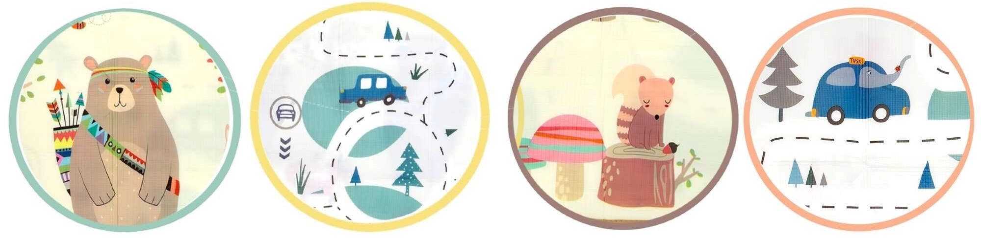 Η μία πλευρά με χαριτωμένα ζωάκια για το παιδικό δωμάτιο, η άλλη με δρόμο και αυτοκίνητα για παιχνίδι με αυτοκινητάκια. Ταιριάζει εύκολα με το εσωτερικό και τη διάθεση του παιδιού.