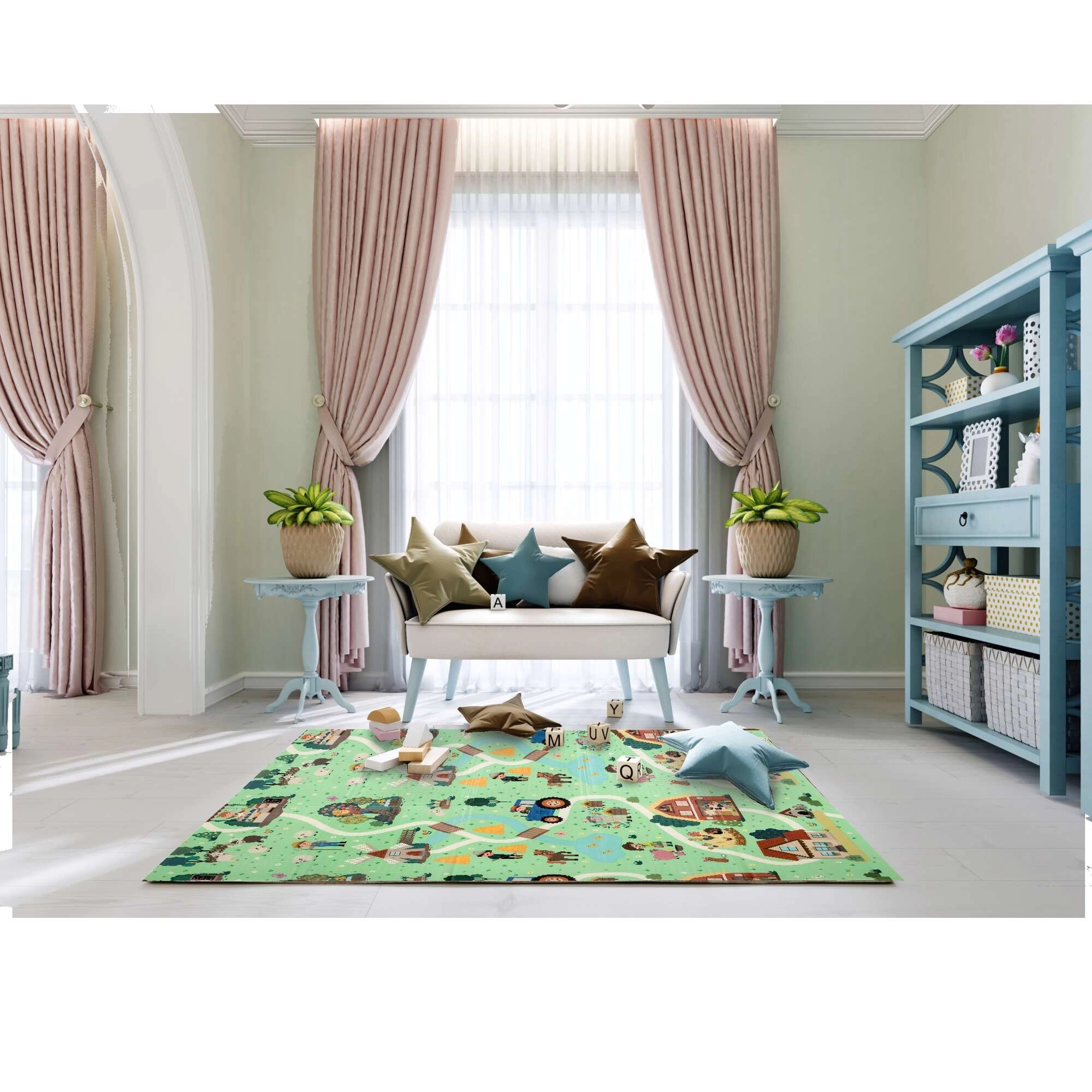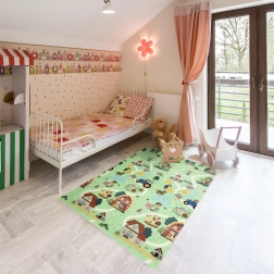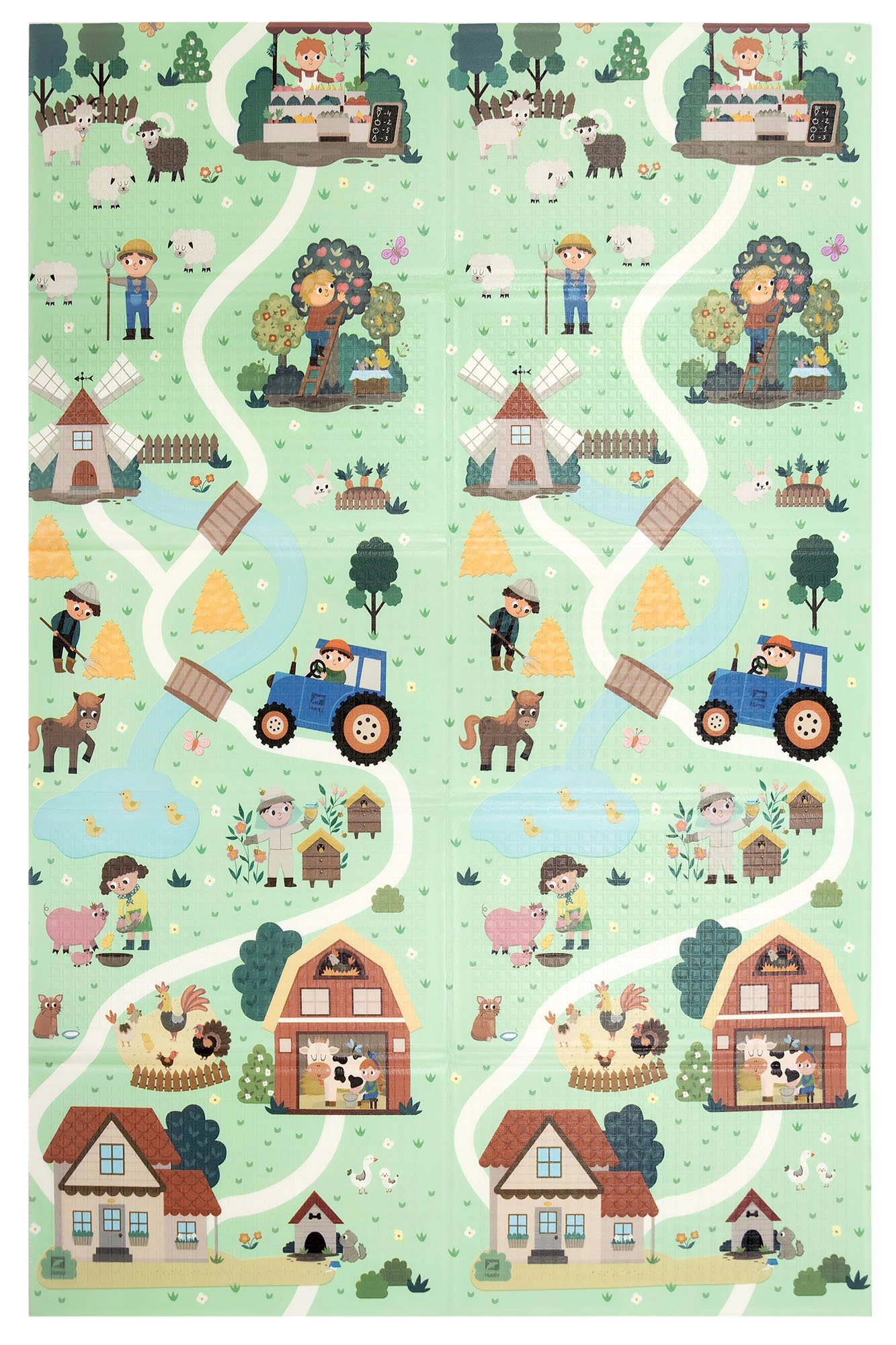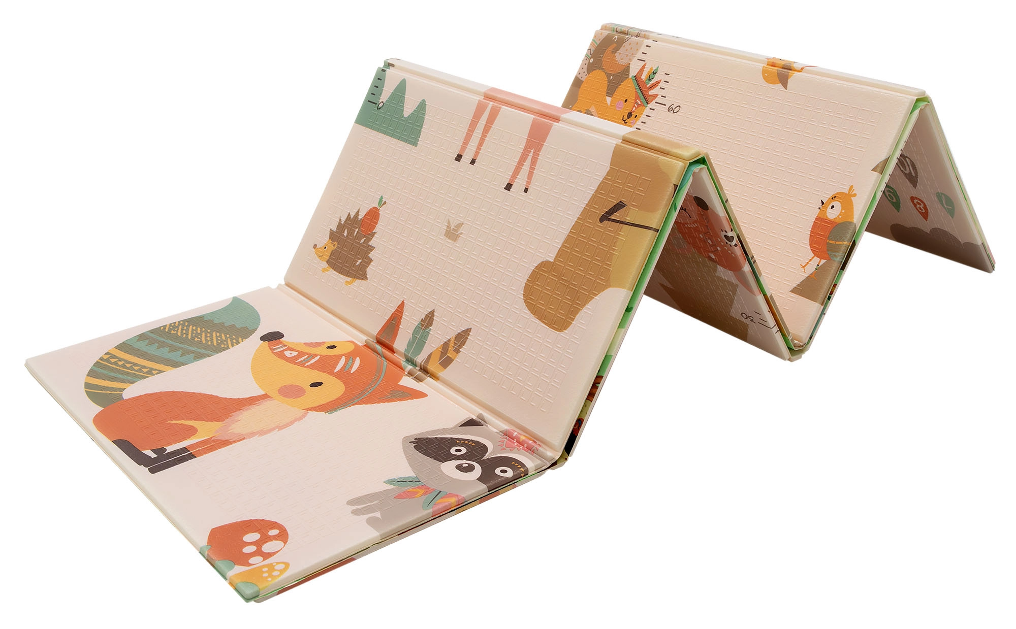 Η μία πλευρά απεικονίζει ζωάκια του δάσους, η άλλη ένα χωριό με δρόμους για αυτοκινητάκια. Εναλλάσσετε τα μοτίβα ανάλογα με τη διάθεση και ενισχύετε τη φαντασία και την αισθητηριακή αντίληψη.