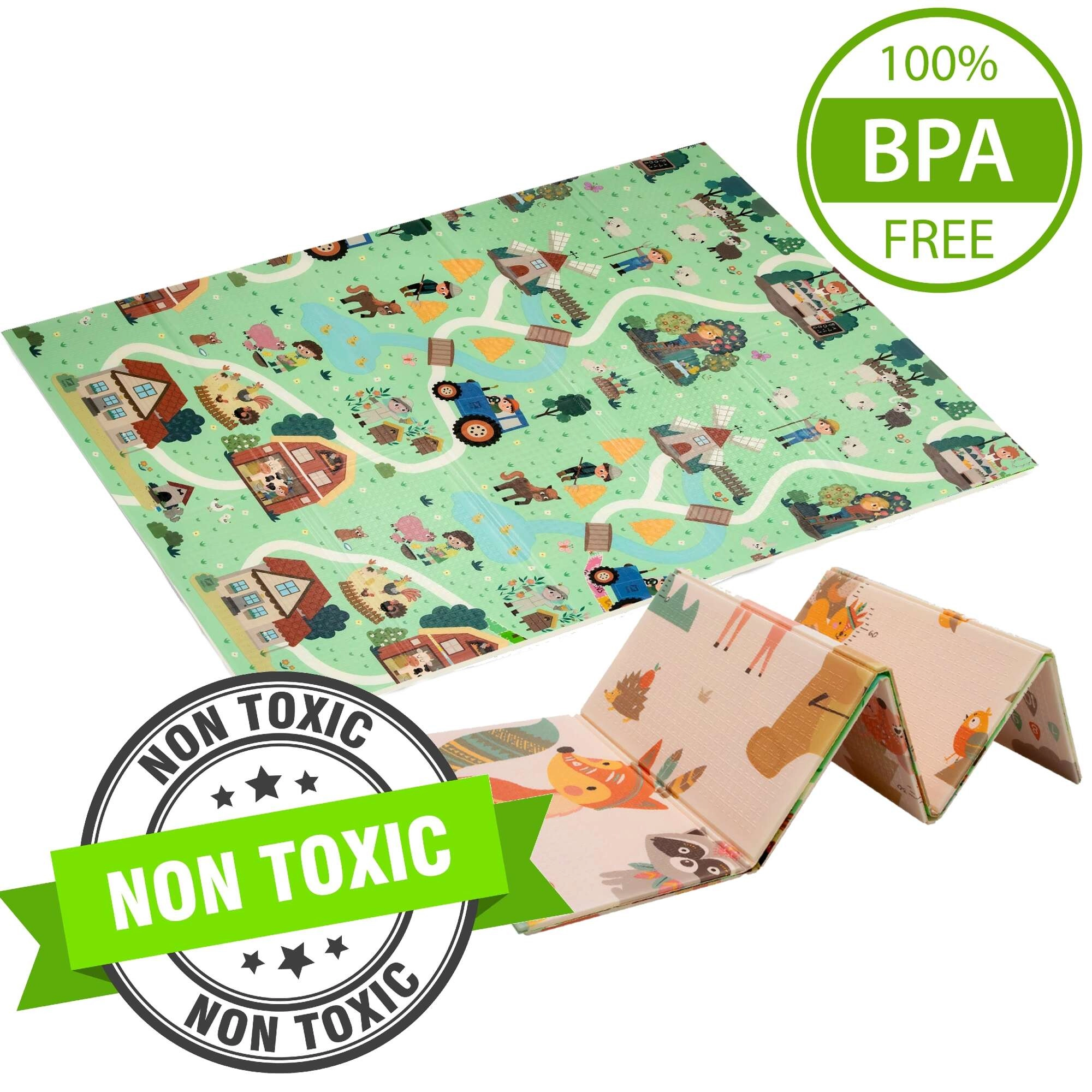 Ο premium αφρός XPE είναι άοσμος, μη τοξικός και ανθεκτικός. Χάρη στο πάχος 0,8 cm μονώνει από το κρύο και προσφέρει άνετη επένδυση για μπουσούλημα και τα πρώτα βήματα. Η διπλής όψης εκτύπωση υποστηρίζει τον αισθητηριακό αναπτυξιακό και ενθαρρύνει το δημιουργικό παιχνίδι με αυτοκινητάκια στους δρόμους και την αναγνώριση των ζώων.
