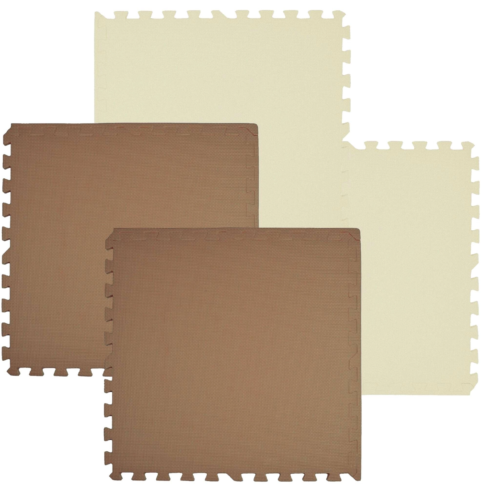 Δημιουργήστε μια ασφαλή και ζεστή ζώνη παιχνιδιού για τα παιδιά. Η αφρώδης υπόστρωση από ποιοτικό αφρό EVA είναι μαλακή, ελαστική και φιλική προς το παιδικό δέρμα. Χάρη στο πάχος 1 εκ. απορροφά τους κραδασμούς και προστατεύει από το κρύο των σκληρών δαπέδων (παρκέ, πλακάκι, λάμινεϊτ). Η κομψή κρεμ-χάλκινη απόχρωση ταιριάζει σε κάθε εσωτερικό χώρο.