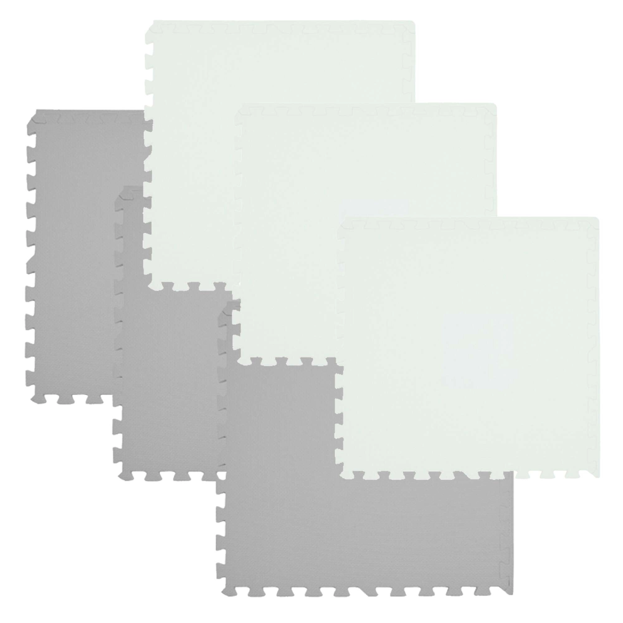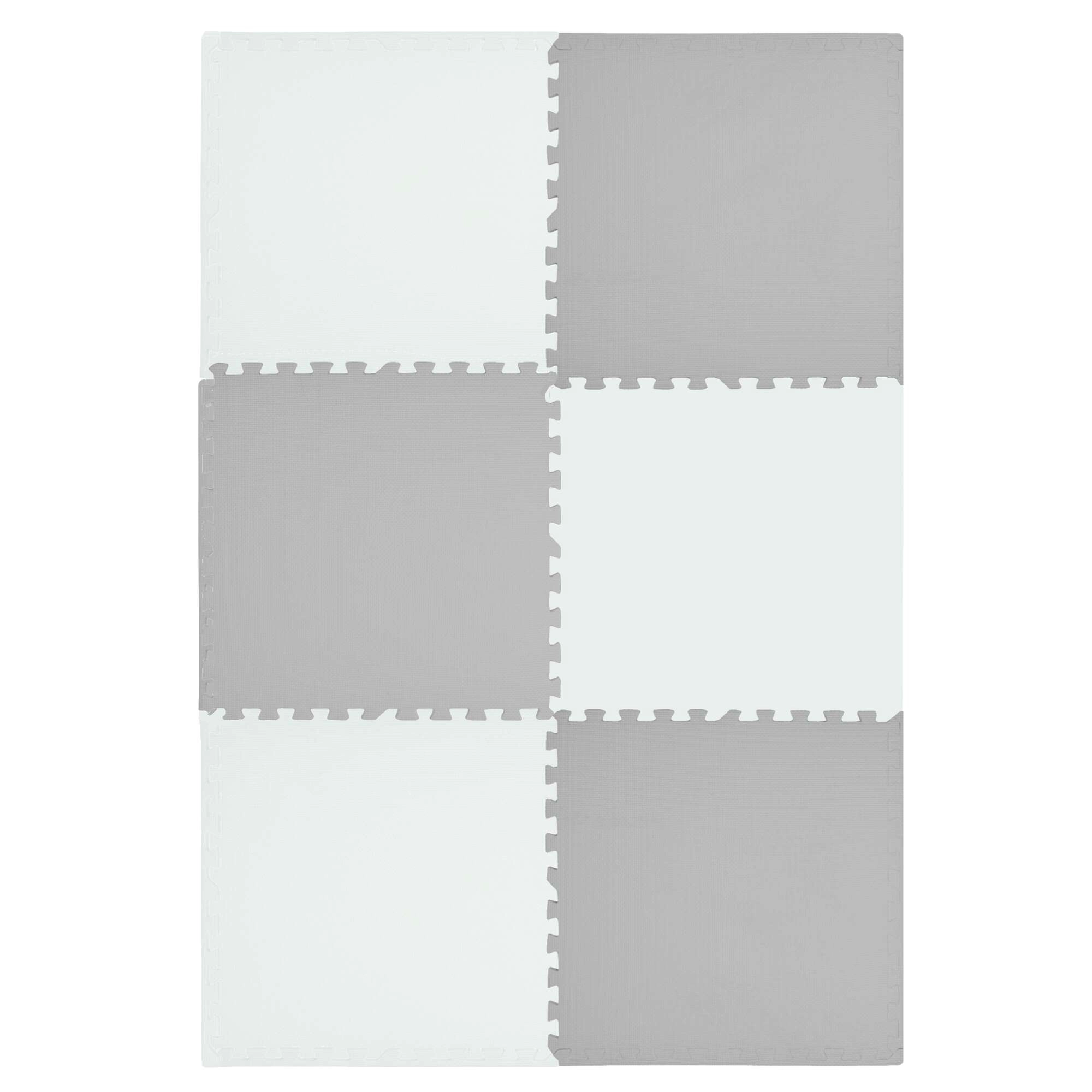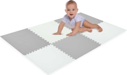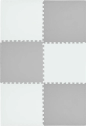 Κομψό αφρώδες δάπεδο σε ουδέτερα χρώματα λευκό/γκρι που δένει με κάθε διακόσμηση και δεν ενοχλεί οπτικά. Τα κομμάτια, χάρη στις κουμπωτές ενώσεις τύπου παζλ, συναρμολογούνται και αποσυναρμολογούνται γρήγορα, ώστε να προσαρμόζετε εύκολα το μέγεθος και το σχήμα του χώρου. Το υλικό EVA είναι χωρίς φθαλικές ενώσεις, φορμαμίδιο, BPA και PVC, συμμορφώνεται με EN 71 και τις απαιτήσεις REACH και φέρει τη σήμανση CE.