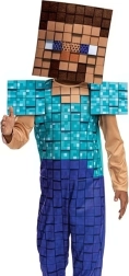 Αυτή η αδειοδοτημένη στολή Minecraft Steve μεταμορφώνει το παιδί σας στον πιο αγαπημένο χαρακτήρα του εμβληματικού παιχνιδιού με κύβους. Η στολή αποτελείται από ολόσωμη φόρμα με τύπωμα τιρκουάζ θωράκισης και μπλε παντελονιού και κυβική μάσκα κεφαλιού για εφέ 8bit ήρωα. Ιδανική για σχολικό καρναβάλι, παιδικά πάρτι και θεματικές φωτογραφίσεις.