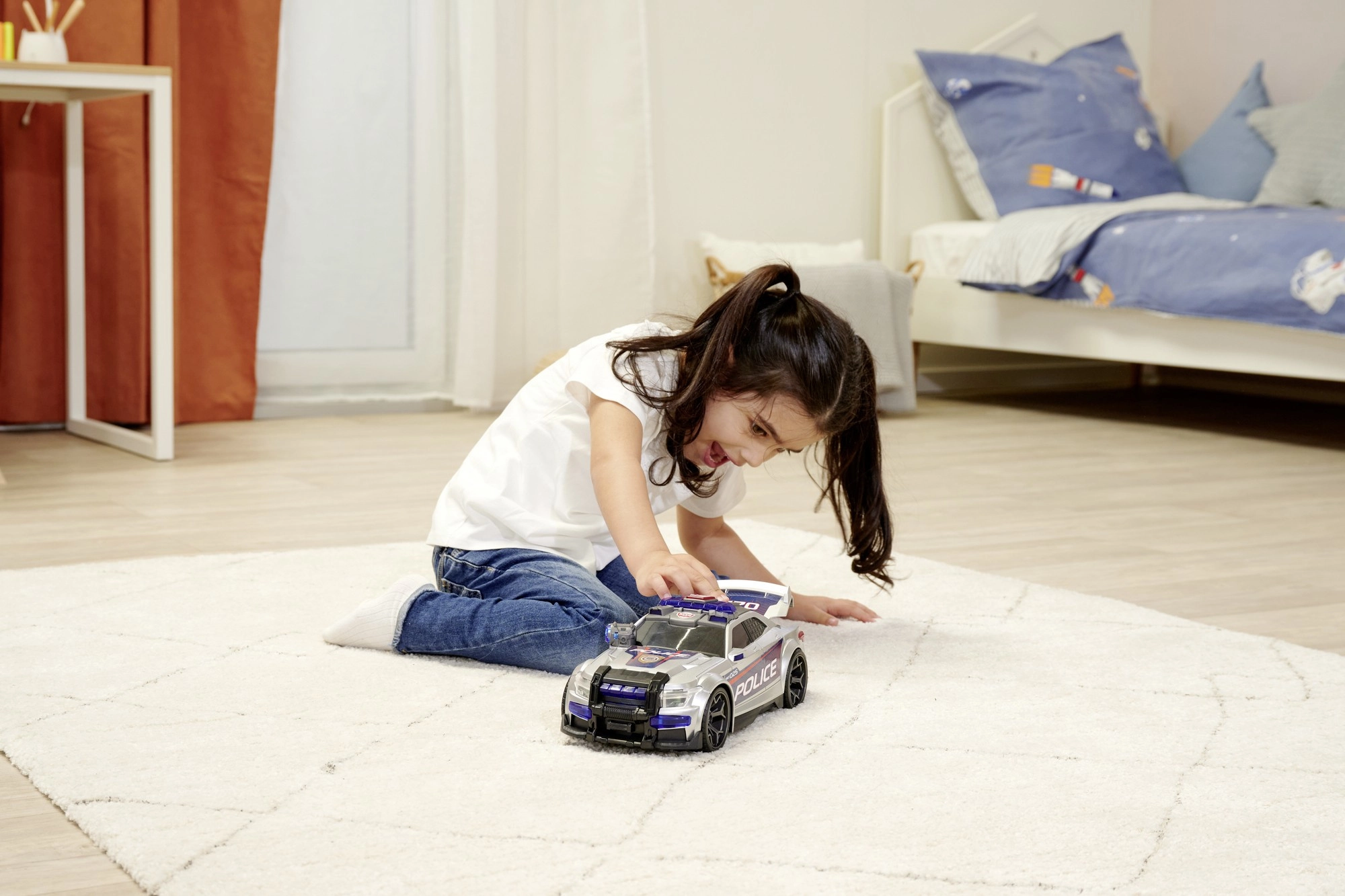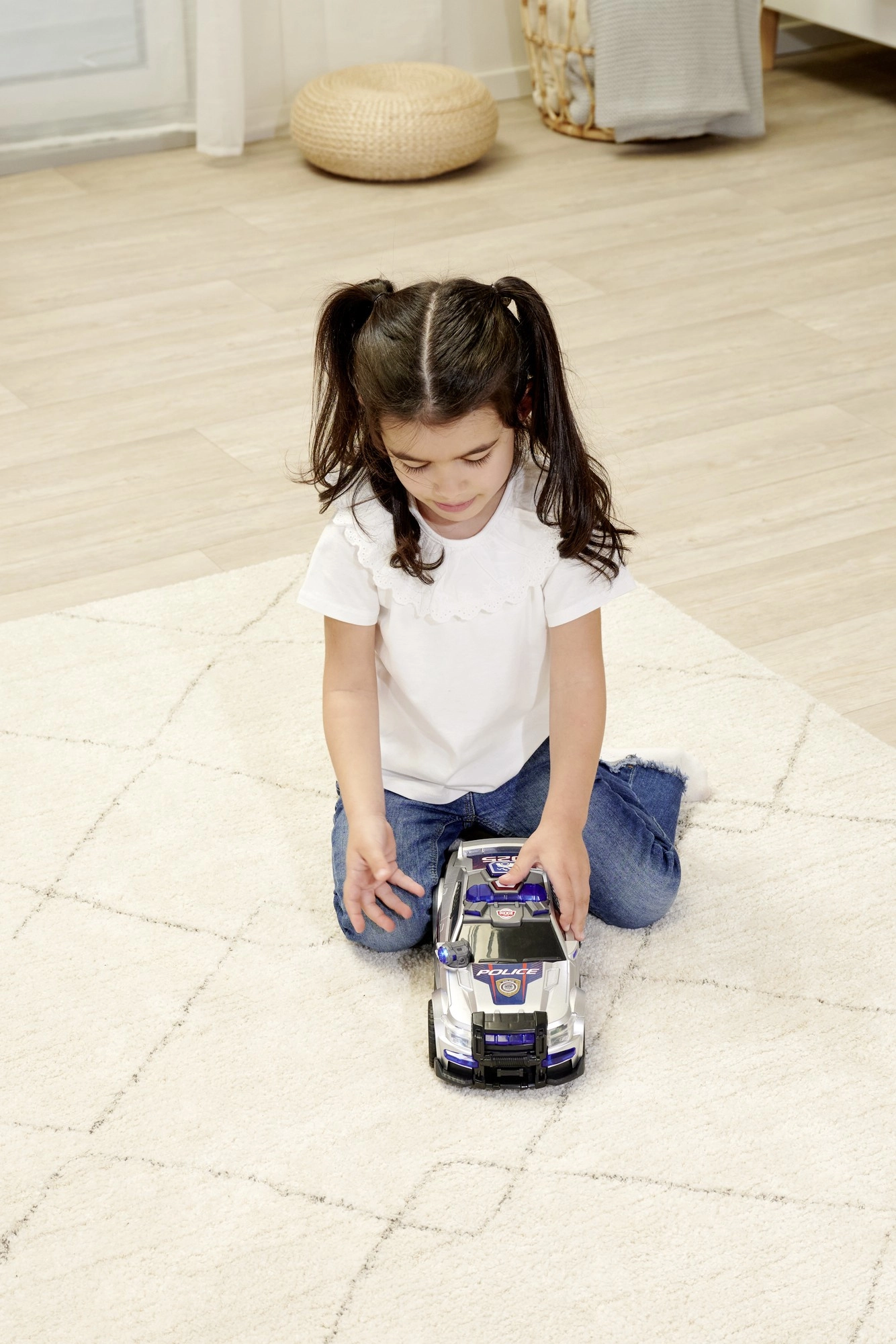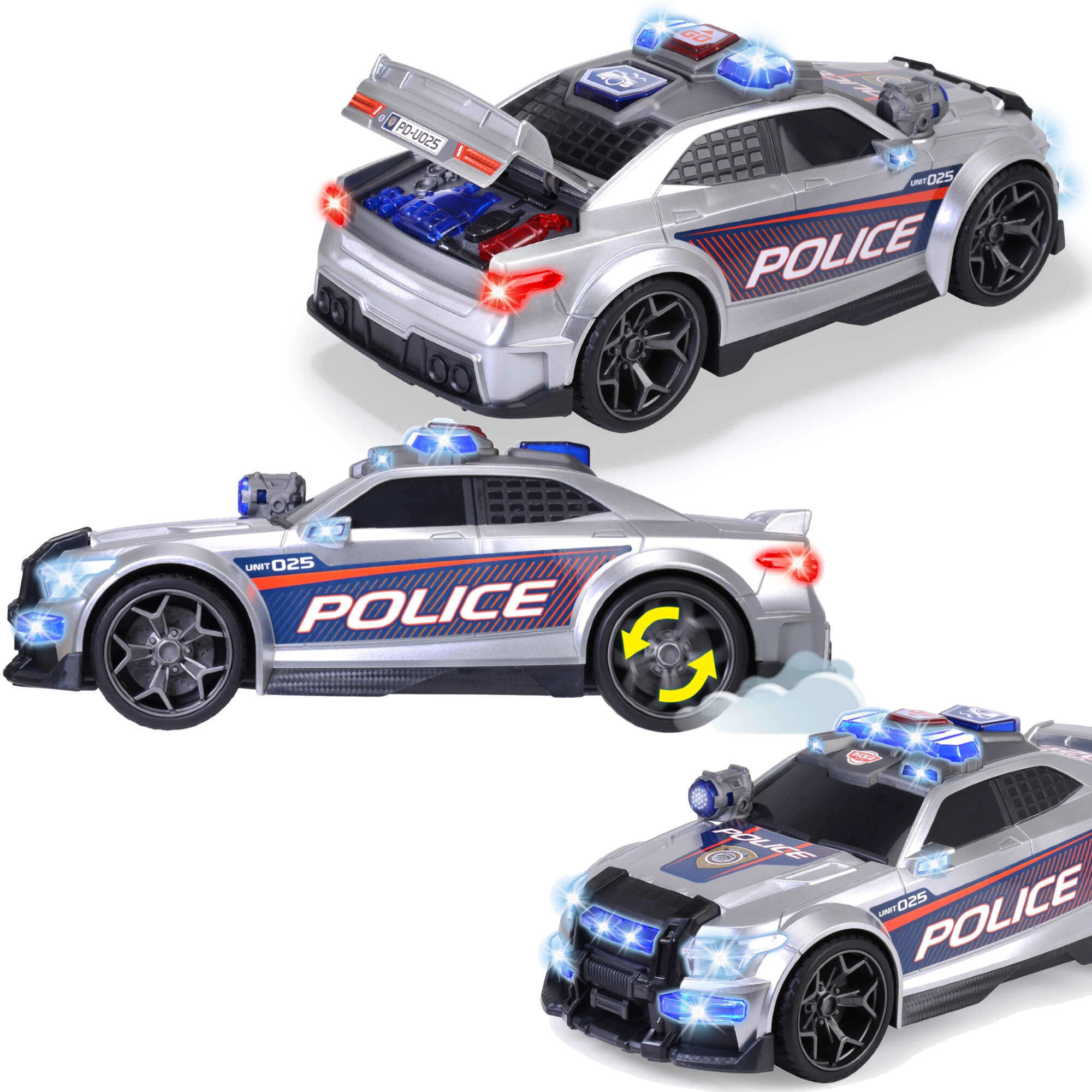 Το περιπολικό Street Force εντυπωσιάζει με ασημί-μπλε σχεδιασμό με έντονες επιγραφές POLICE, ρεαλιστική φωτεινή μπάρα και ανθεκτικούς τροχούς. Τα παιδιά θα εκτιμήσουν τον απλό χειρισμό – αρκεί ένα πάτημα στο κουμπί της οροφής για να ενεργοποιηθούν τα φώτα και οι ήχοι, που αποδίδουν πιστά την ατμόσφαιρα επέμβασης.