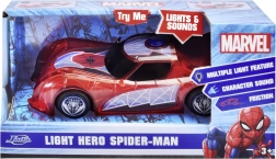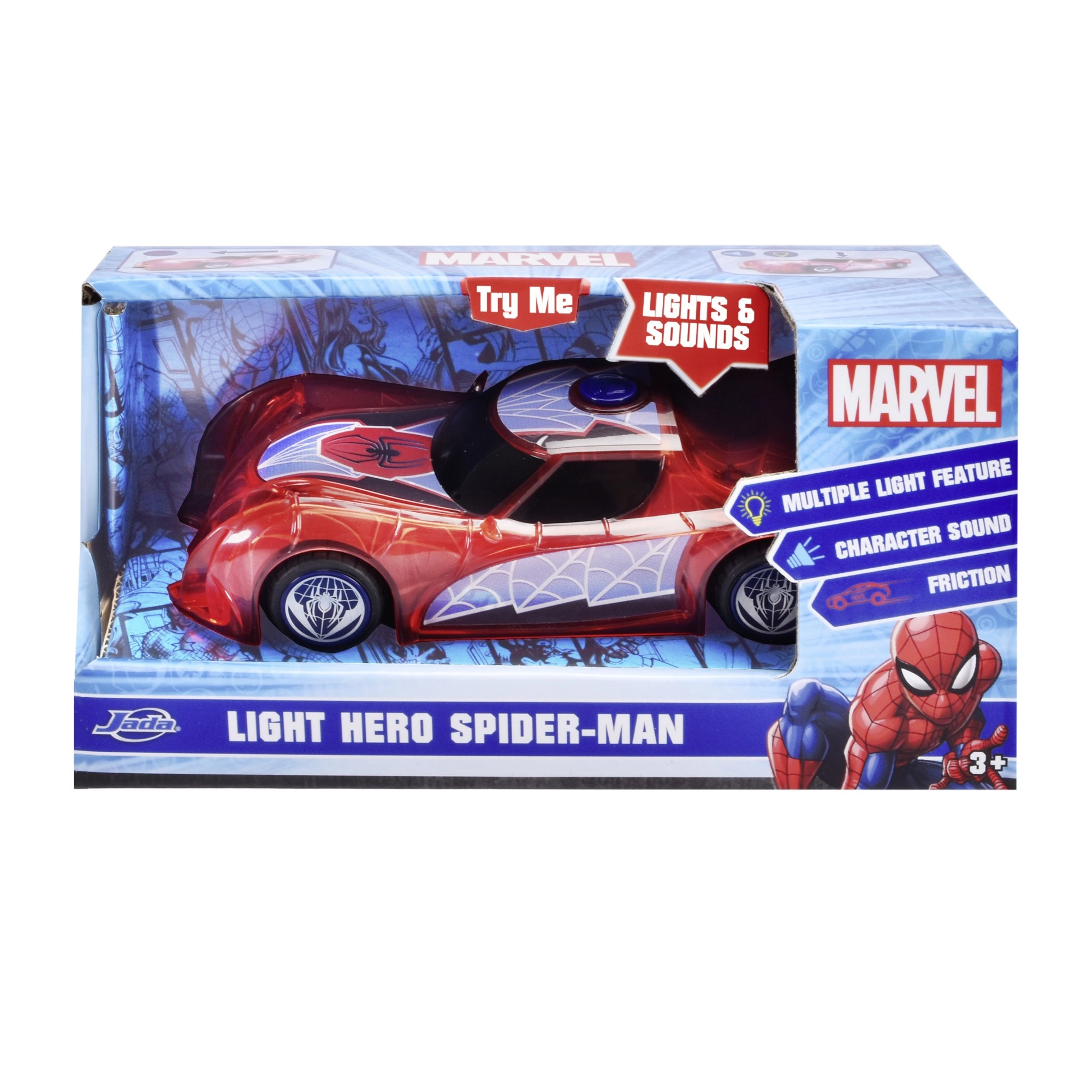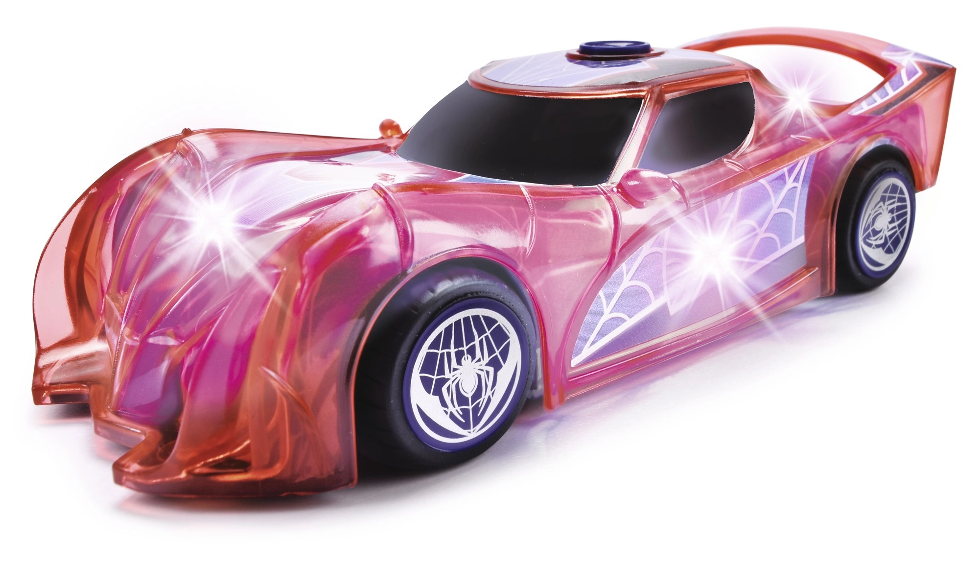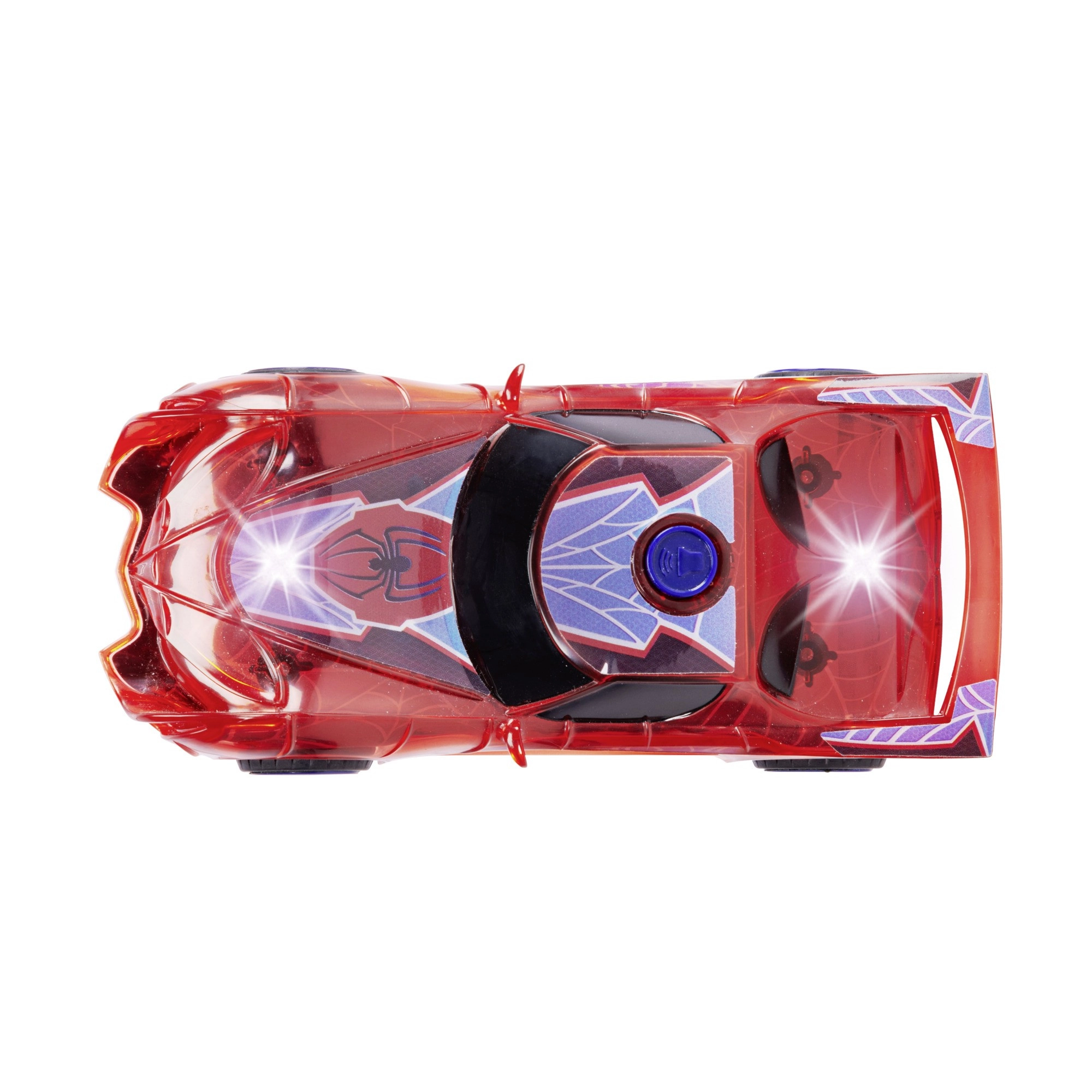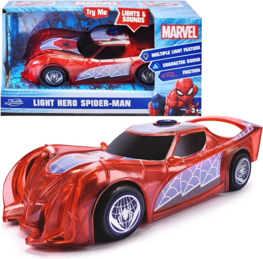 Το σούπερ‑ηρωικό αυτοκίνητο SPIDER‑MAN στη χαρακτηριστική κόκκινη απόχρωση και με λεπτομέρειες ιστού ξεχωρίζει με τον ημιδιαφανή σχεδιασμό και τα ενσωματωμένα LED φώτα που φωτίζουν κάθε περιπέτεια. Ο απλός μηχανισμός push‑and‑go (τριβική κίνηση) χρειάζεται μόνο ένα ελαφρύ σπρώξιμο για να ξεκινήσει μπροστά.