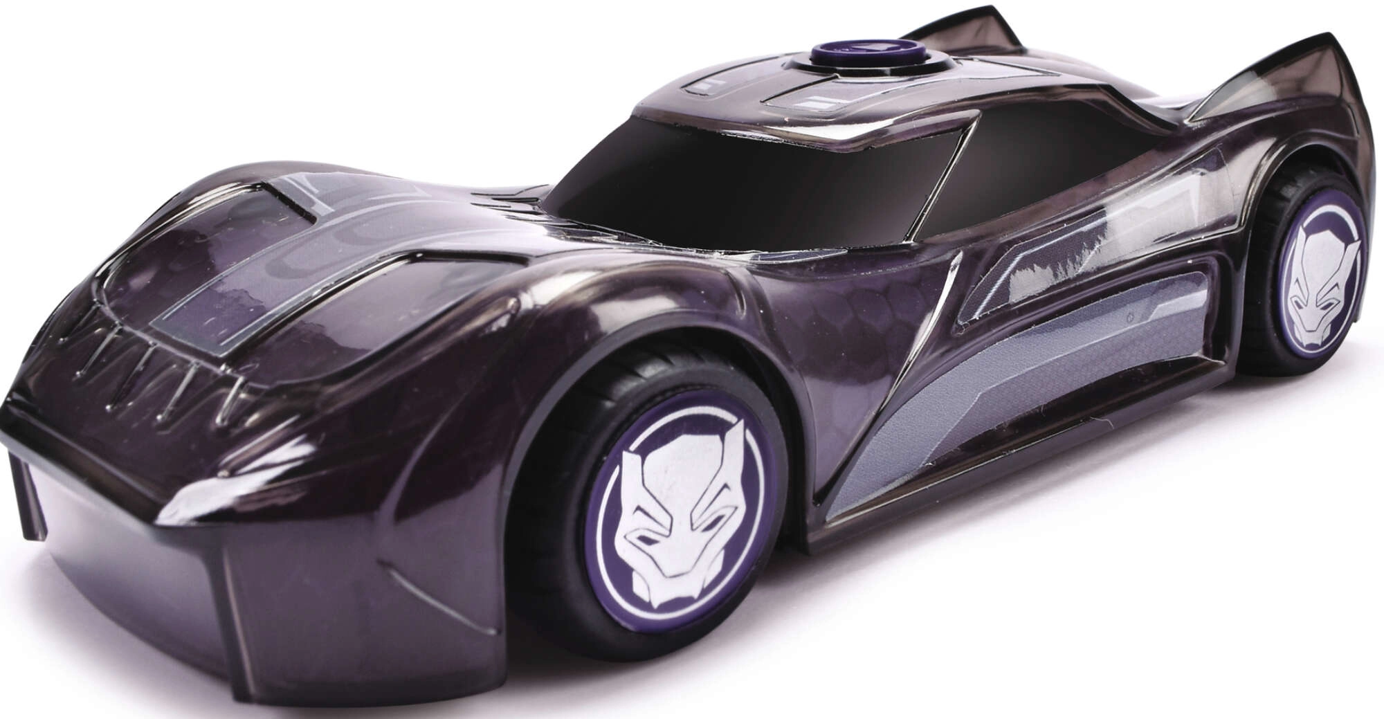 Ξεκινήστε μια περιπέτεια δράσης με το αυτοκινητάκι MARVEL Black Panther. Το αμάξωμα με μοτίβα μάσκας και φουτουριστικές γραμμές αποδίδει ιδανικά το στιλ του αγαπημένου ήρωα. Με το πάτημα του μωβ κουμπιού ενεργοποιούνται η λάμψη φωτισμού σε όλο το αμάξωμα και οι αυθεντικοί ήχοι οχήματος και χαρακτήρα για ακόμα μεγαλύτερη απόλαυση παιχνιδιού.