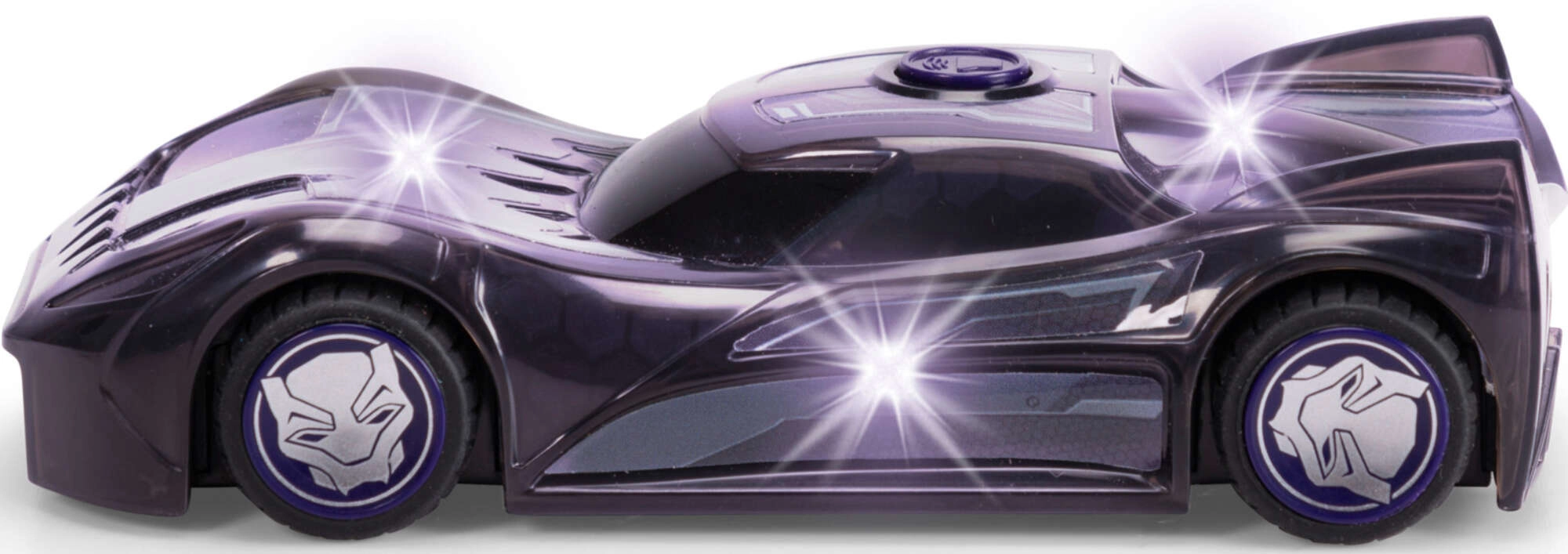 Λαμπερά LED εφέ φωτίζουν το αυτοκινητάκι και αναδεικνύουν την υπερηρωική εμφάνιση του BLACK PANTHER – ιδανικό για βραδινό παιχνίδι και σκηνές δράσης.