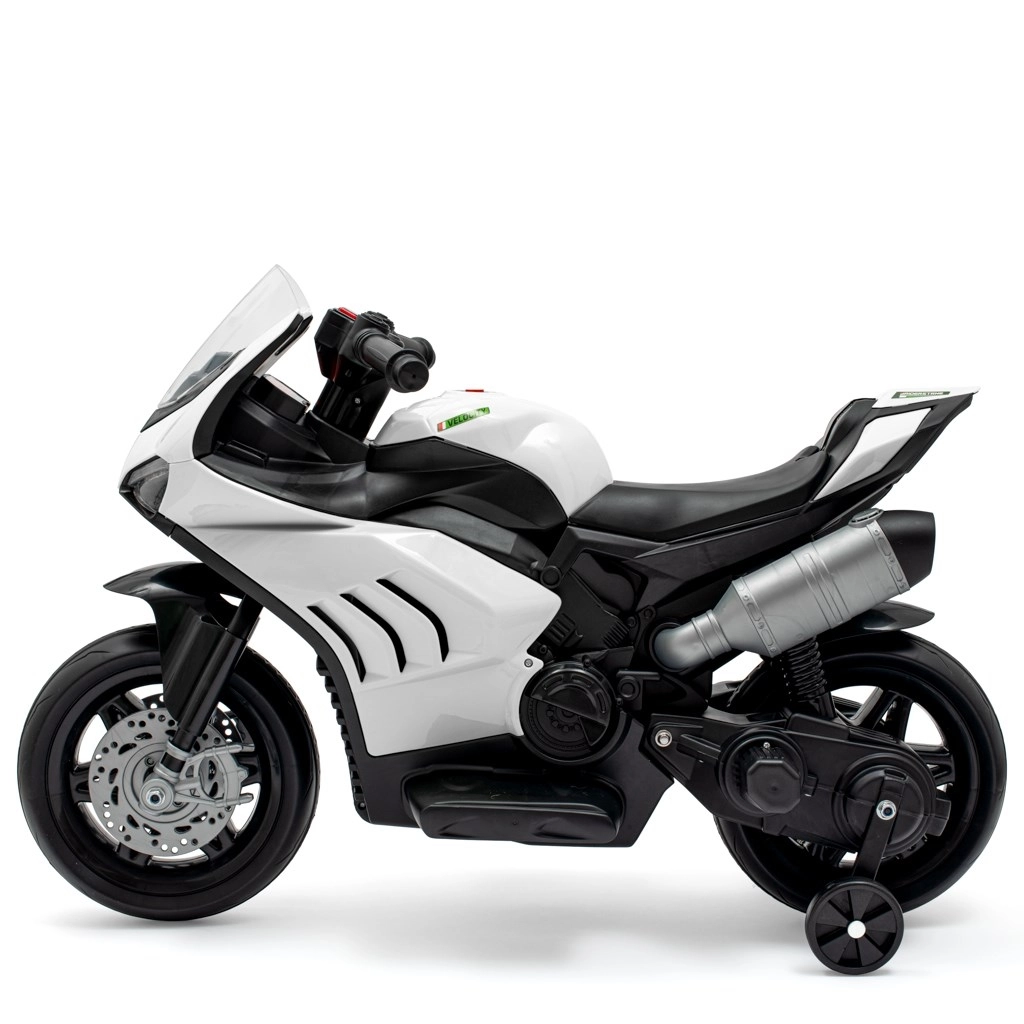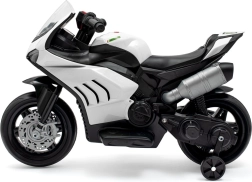 Η ηλεκτρική μηχανή Supersport έχει σχεδιαστεί για μικρούς αρχάριους αναβάτες που θέλουν να νιώσουν την αίσθηση της πραγματικής οδήγησης. Χάρη στο πεντάλ γκαζιού και στο κουμπί για οδήγηση μπροστά και πίσω, χειρίζεται πολύ εύκολα και υποστηρίζει την ανάπτυξη του συντονισμού και της κινητικότητας. Οι βοηθητικοί τροχοί εξασφαλίζουν σταθερότητα και σιγουριά στις πρώτες βόλτες.