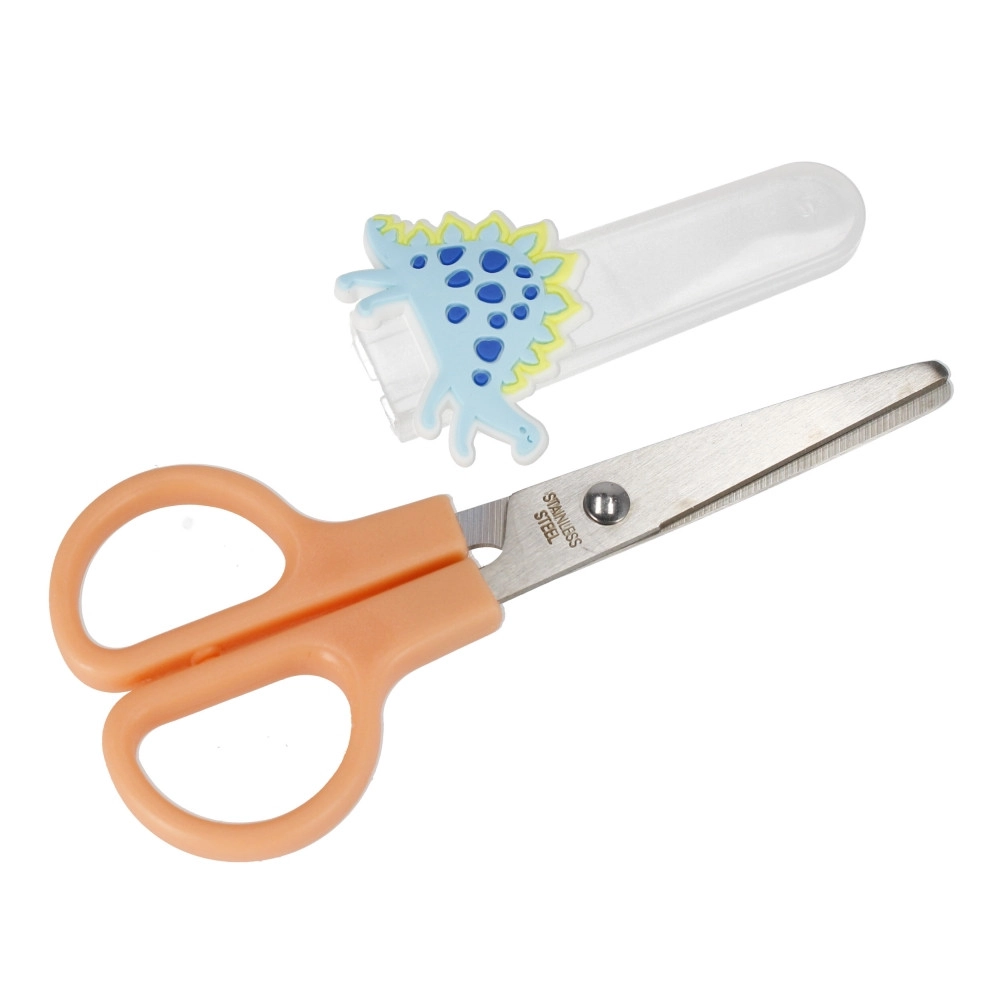 Προσφέρετε στα παιδιά χαρά στη δημιουργία με το ασφαλές και παιχνιδιάρικο ψαλίδι Dino. Το ψαλίδι έχει συμπαγές μήκος 12 cm, κρατιέται εύκολα και χάρη στις στρογγυλεμένες άκρες προσφέρει καλύτερη προστασία κατά το κόψιμο χαρτιού και μικρών υλικών. Η προστατευτική θήκη κρατά τις λεπίδες καλυμμένες κατά τη μεταφορά και την αποθήκευση.