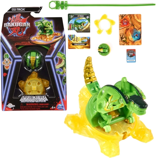 Το σετ Special Attack φέρνει νέο τρόπο παιχνιδιού με τους Bakugan: ο περιστροφικός μηχανισμός εξασφαλίζει δυναμικές μάχες και εντυπωσιακές στιγμές μεταμόρφωσης. Το μοντέλο Trox αποτελείται από δύο μέρη, το Bakugan Top και το Bakugan Bottom, ανάμεσα στα οποία μπορείτε να τοποθετήσετε το Power Ring για ακόμη καλύτερη σταθερότητα και θεαματική περιστροφή.