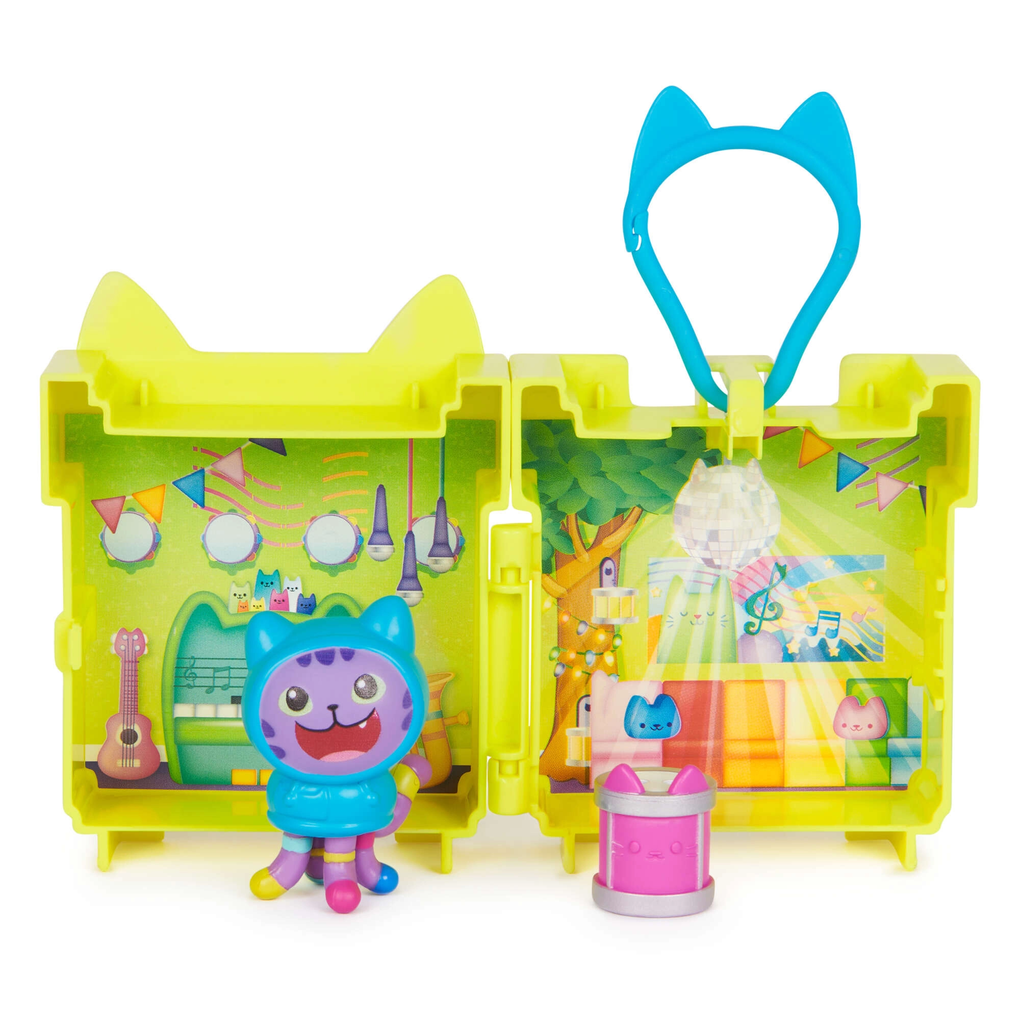 Ανακαλύψτε το χαριτωμένο μίνι μποξ με θέμα τον DJ Catnip από τη δημοφιλή σειρά Gabby’s Dollhouse. Η κίτρινη γατόμορφη θήκη ανοίγει σε μια μουσική σκηνή όπου τα παιδιά μπορούν να καλλιεργήσουν τη φαντασία τους, να αφηγηθούν ιστορίες και να παίξουν με υπέροχα αξεσουάρ. Χάρη στο πρακτικό καραμπίνερ, το σετ στερεώνεται εύκολα σε σακίδιο ή τσάντα και είναι πάντα διαθέσιμο.