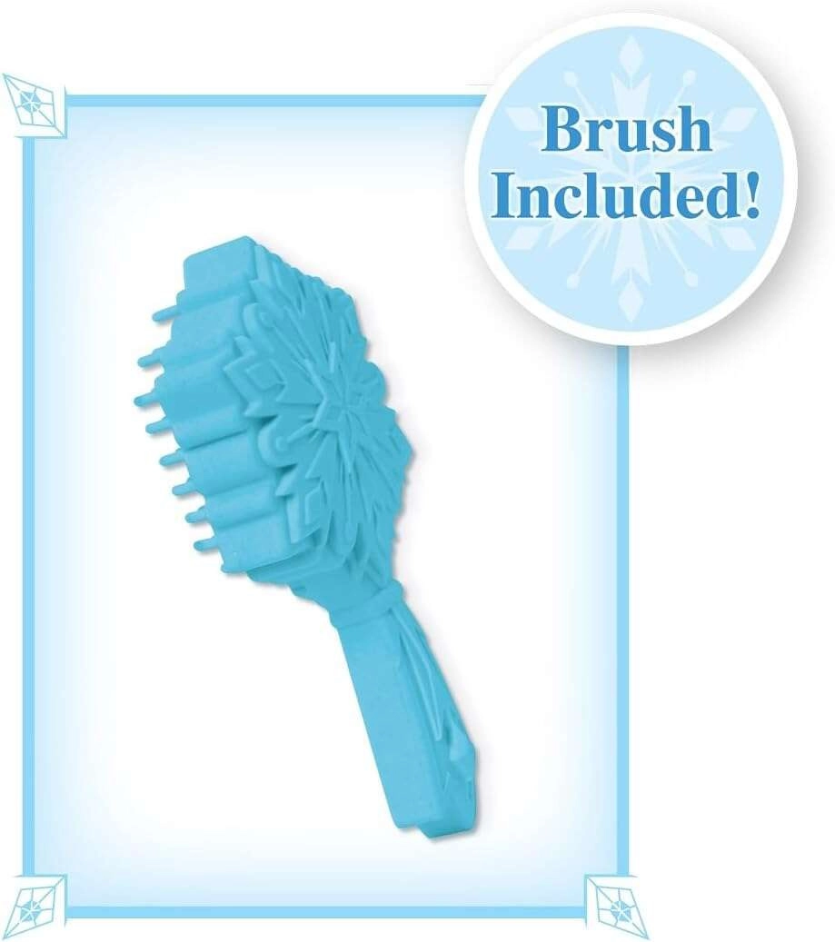 Περιλαμβάνεται θεματική βούρτσα που ξεμπερδεύει απαλά τις τούφες και χαρίζει στο παιχνίδι τη μαγευτική ατμόσφαιρα του FROZEN.